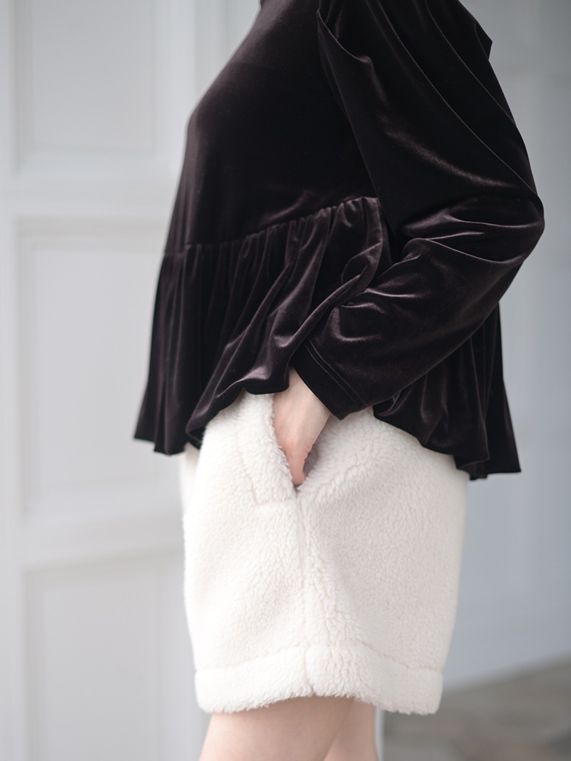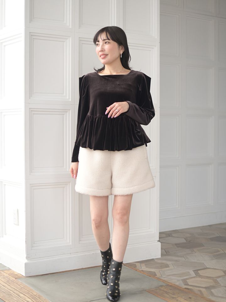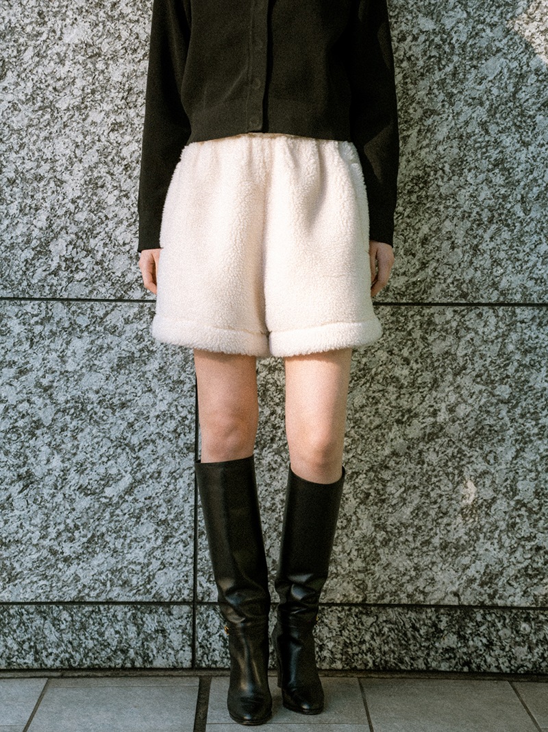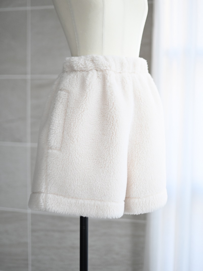 テディベアを思わせるボディにパイピングを施しキレイめに仕上げたショートパンツ。ふんわりとしながらも目の詰まったボア生地を使用し、軽量なのも嬉しいポイント。