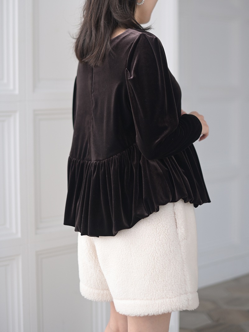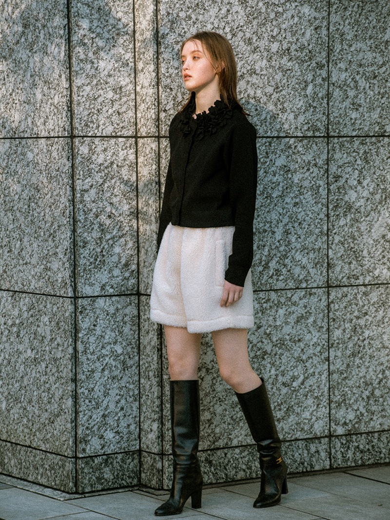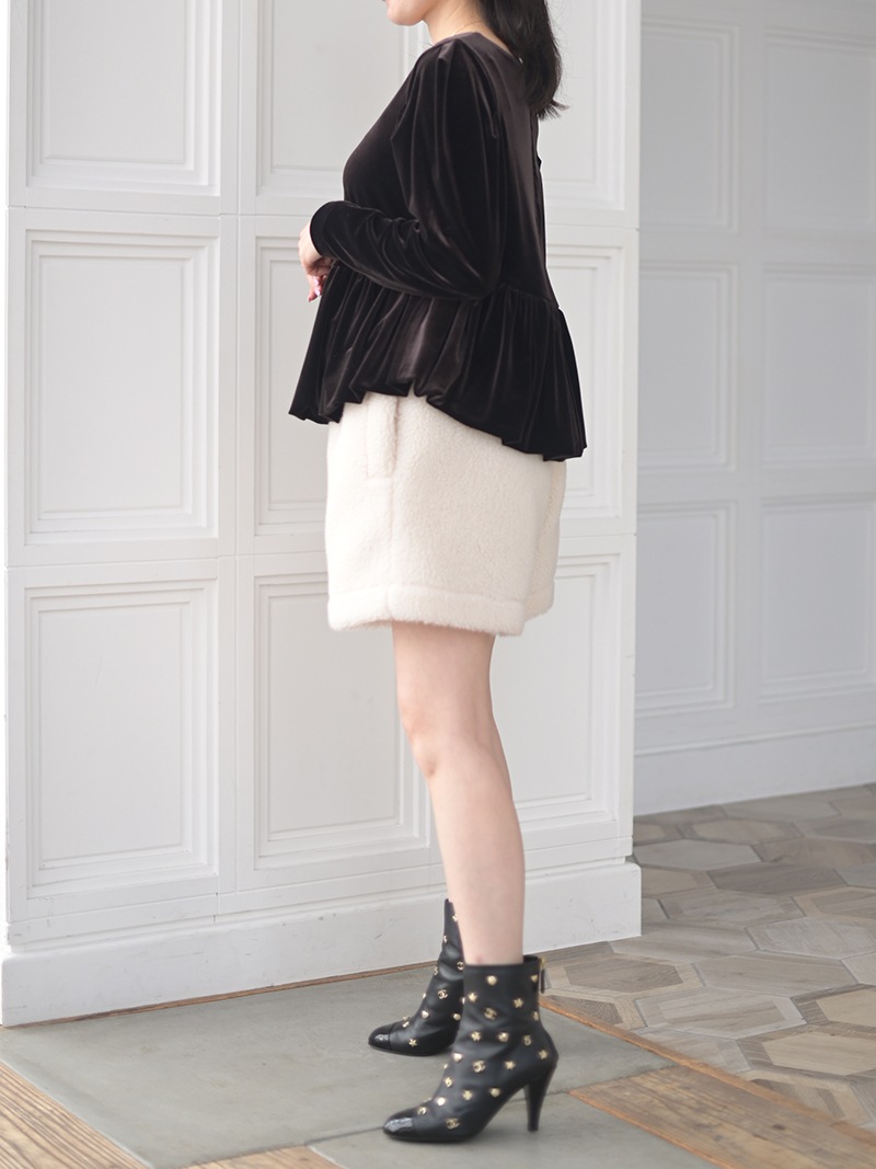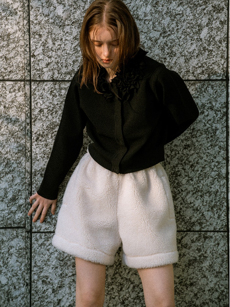 テディベアを思わせるボディにパイピングを施しキレイめに仕上げたショートパンツ。ふんわりとしながらも目の詰まったボア生地を使用し、軽量なのも嬉しいポイント。