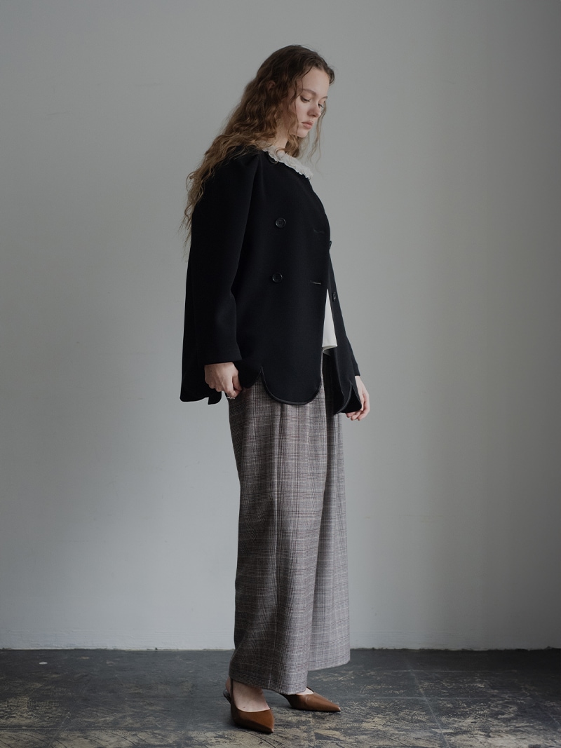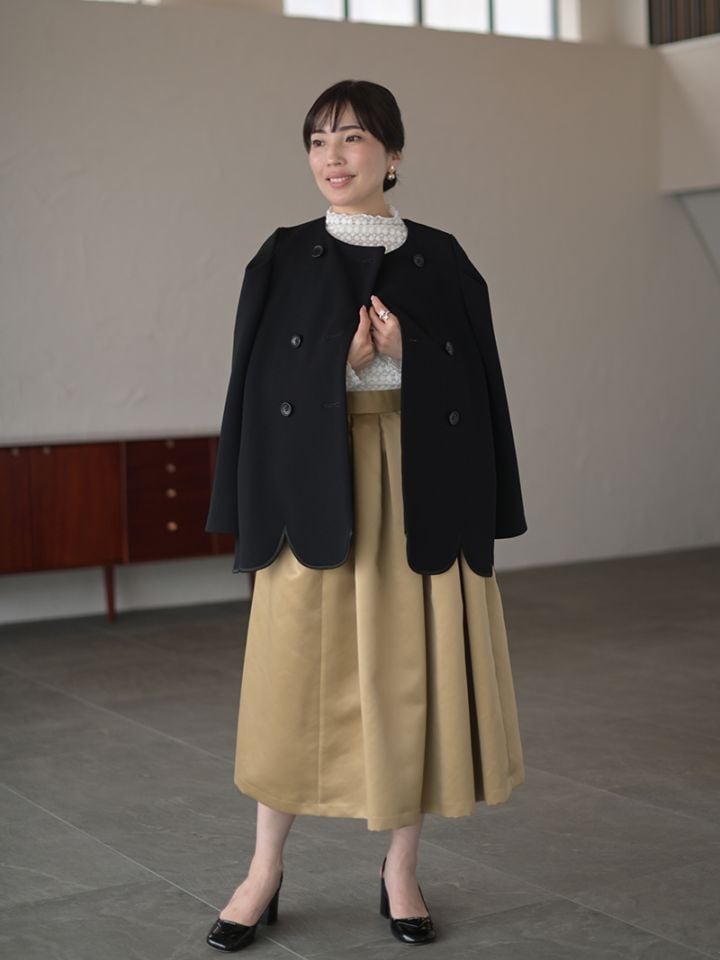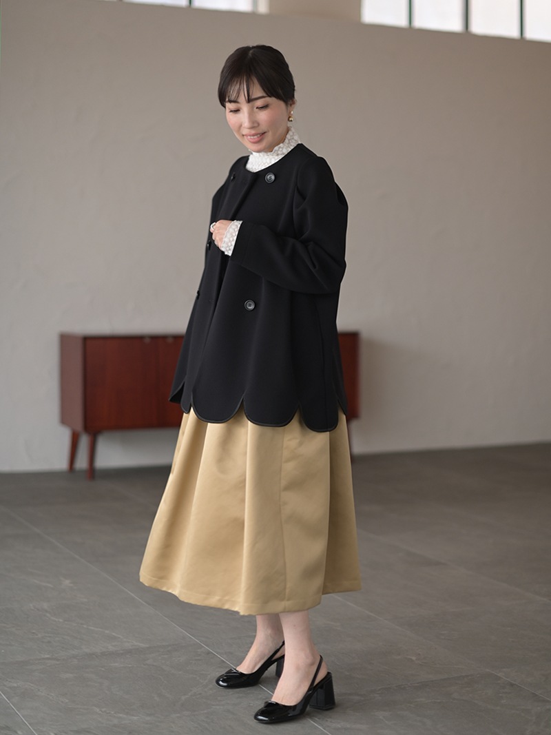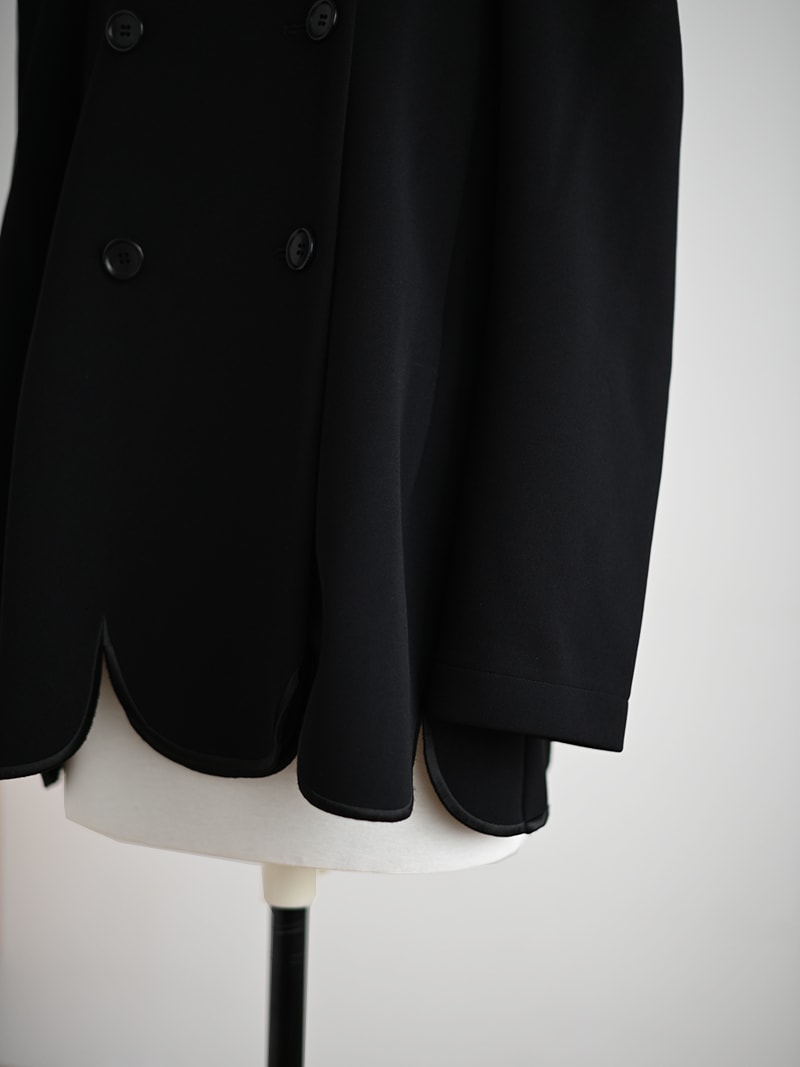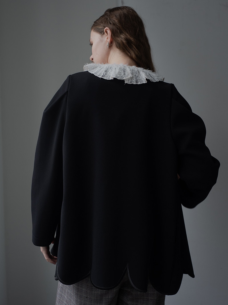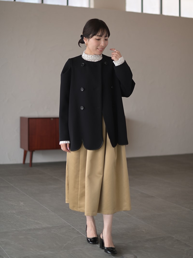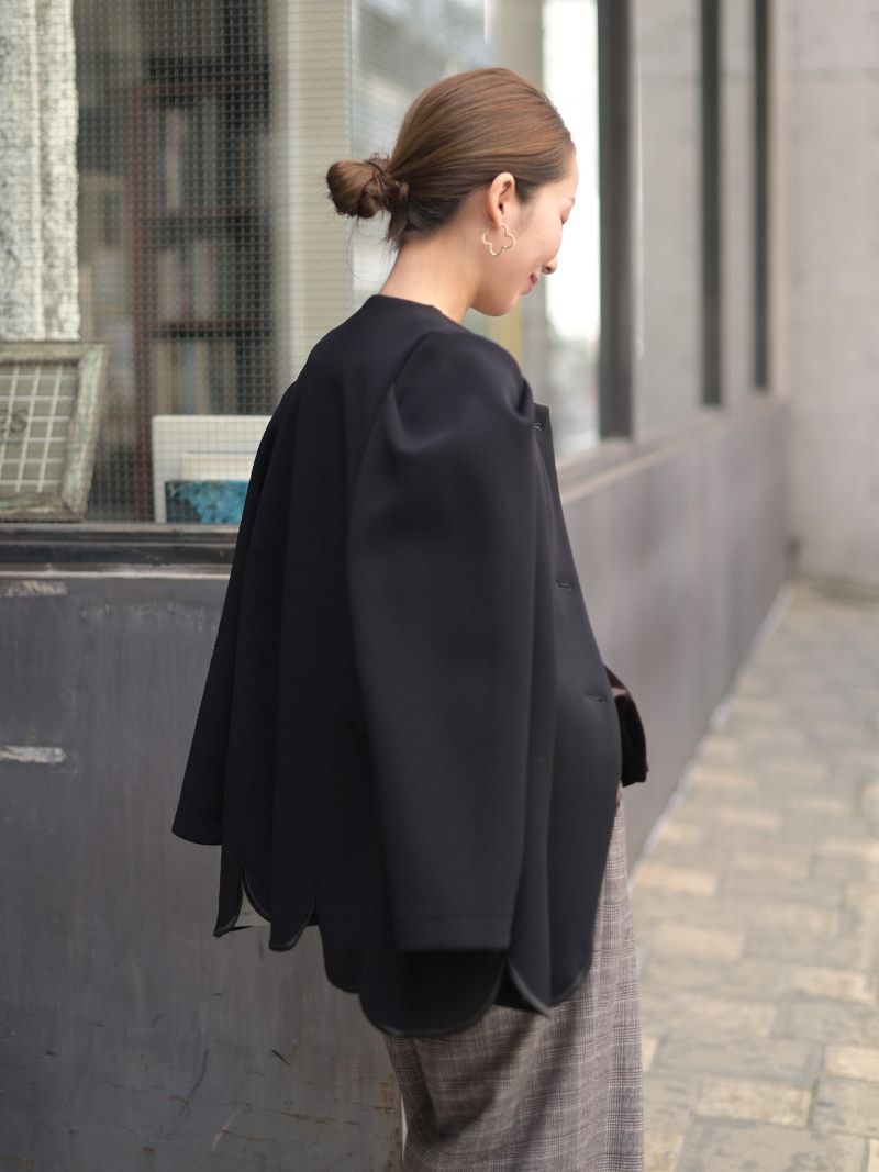 ダブルジャケットを人気のスカラップデザインで。裾スカラップには刺繍も施し存在感アップ。