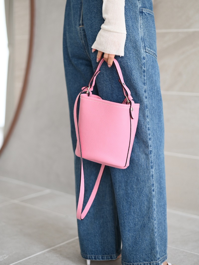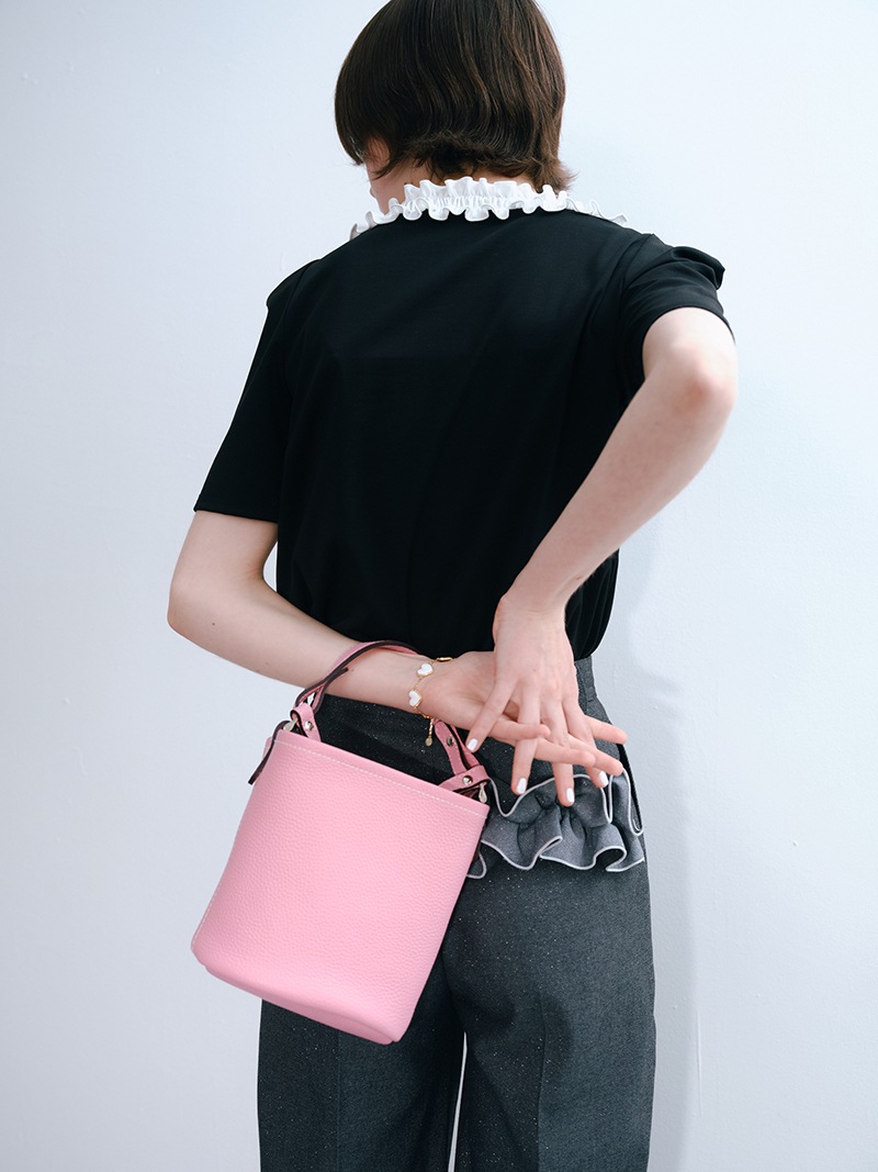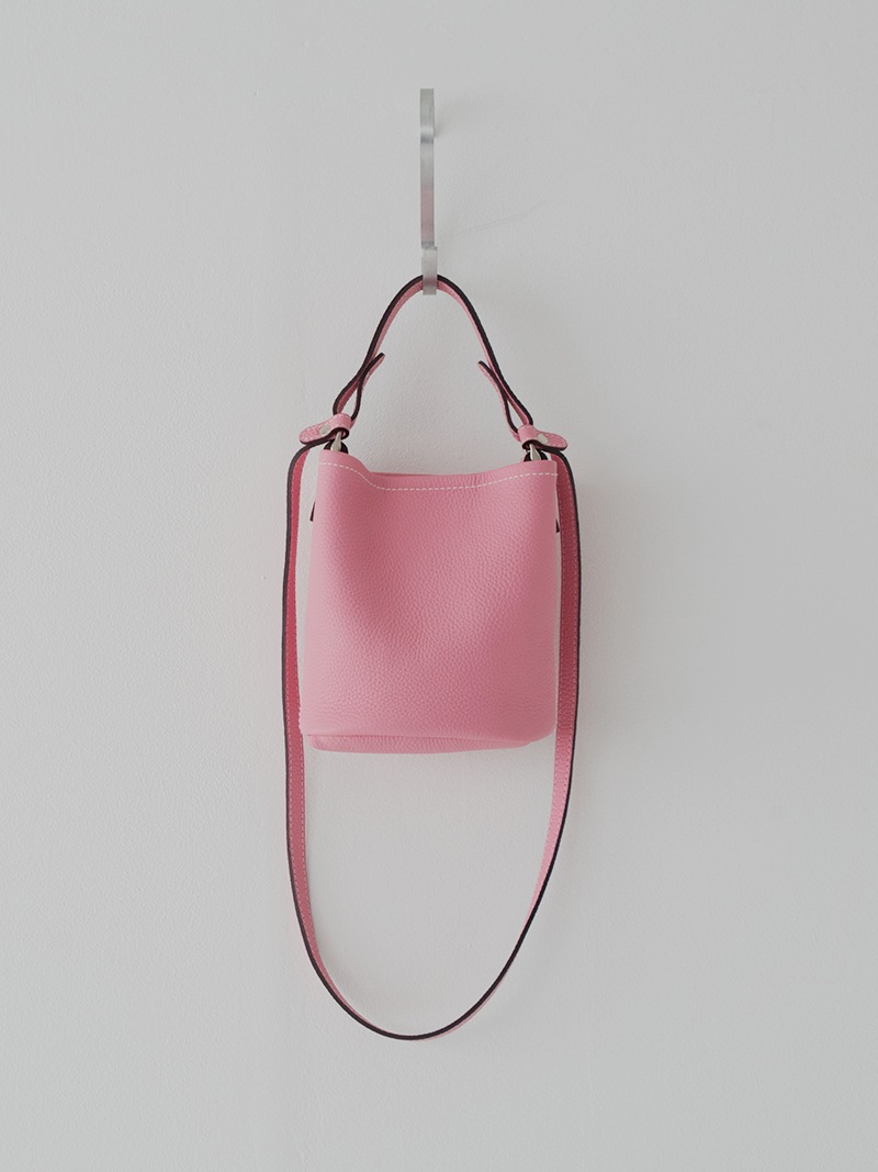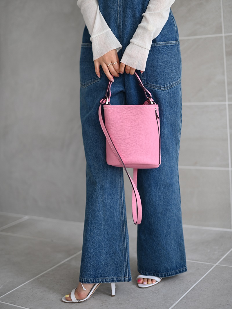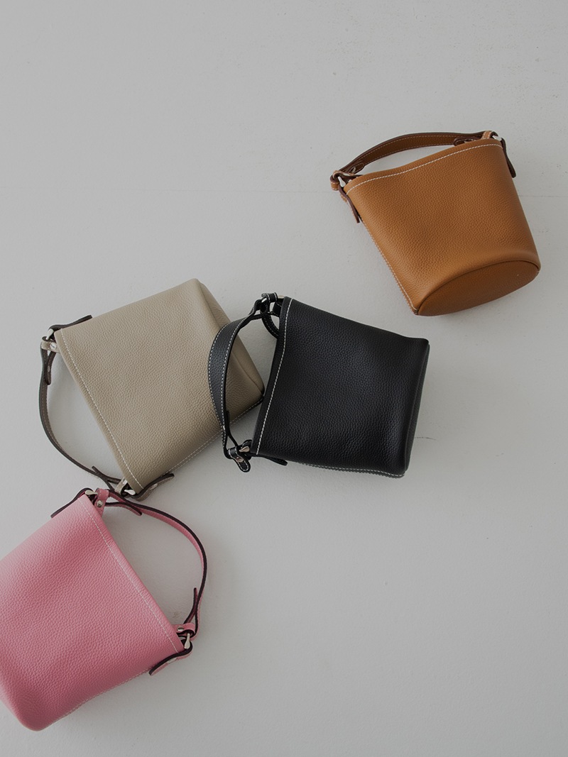上質な天然皮革を使用したシンプルでどのようなコーデにも合わせやすいレザーバッグ。革に適度なコシと柔らかさがあり、また型押しも適度に不揃いとなり自然な表情が生まれています。