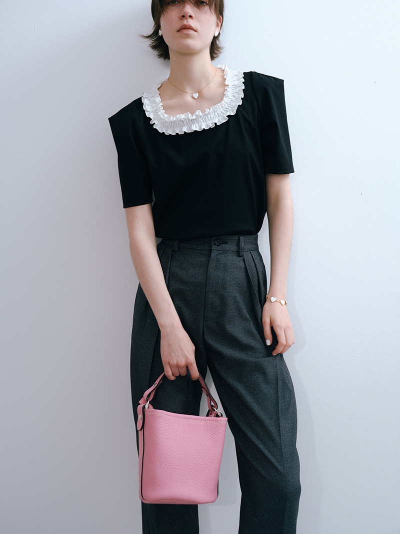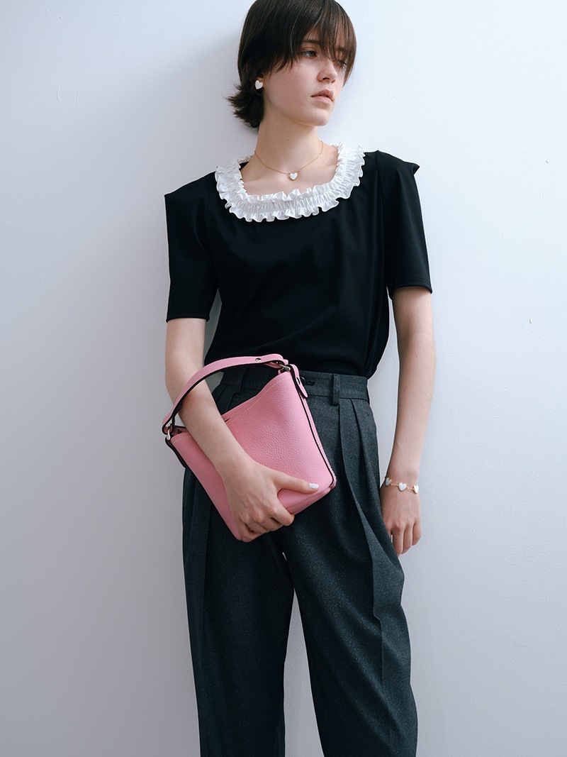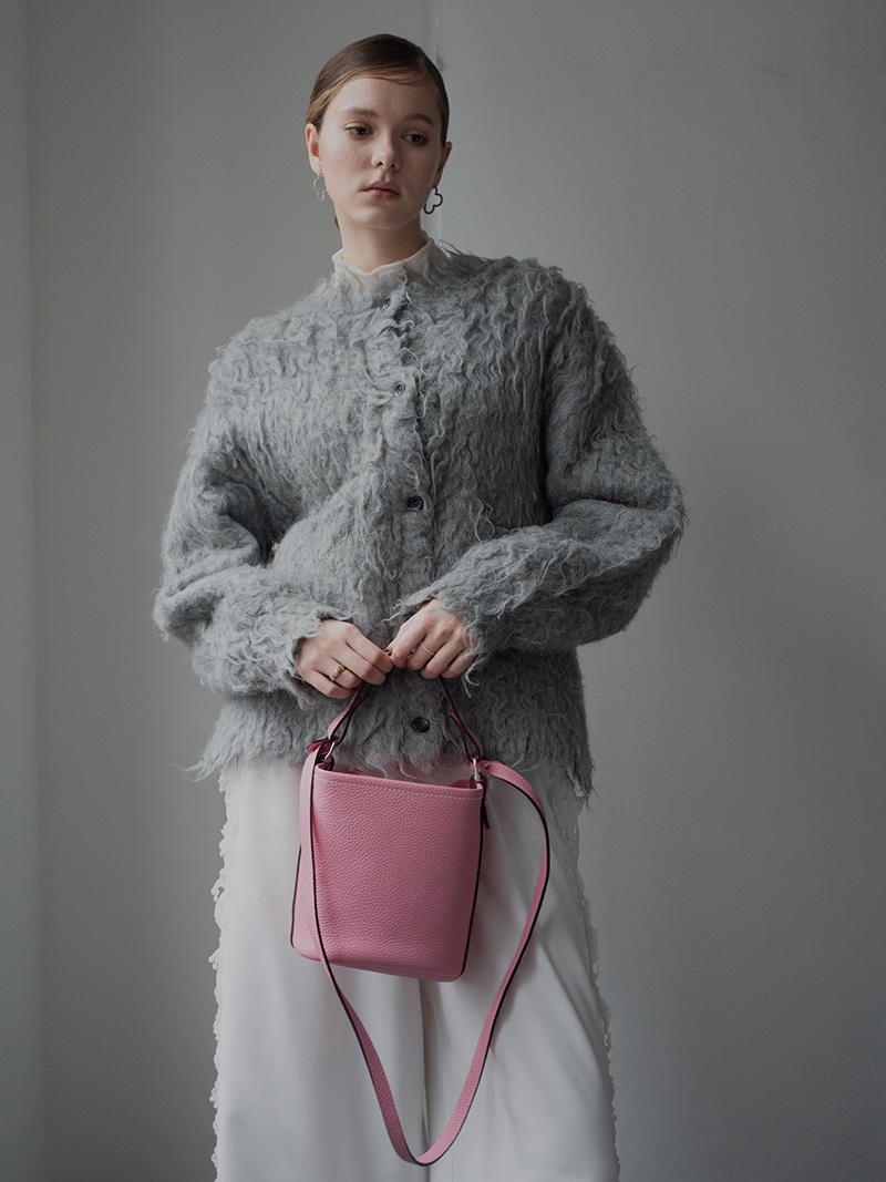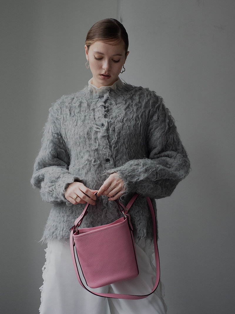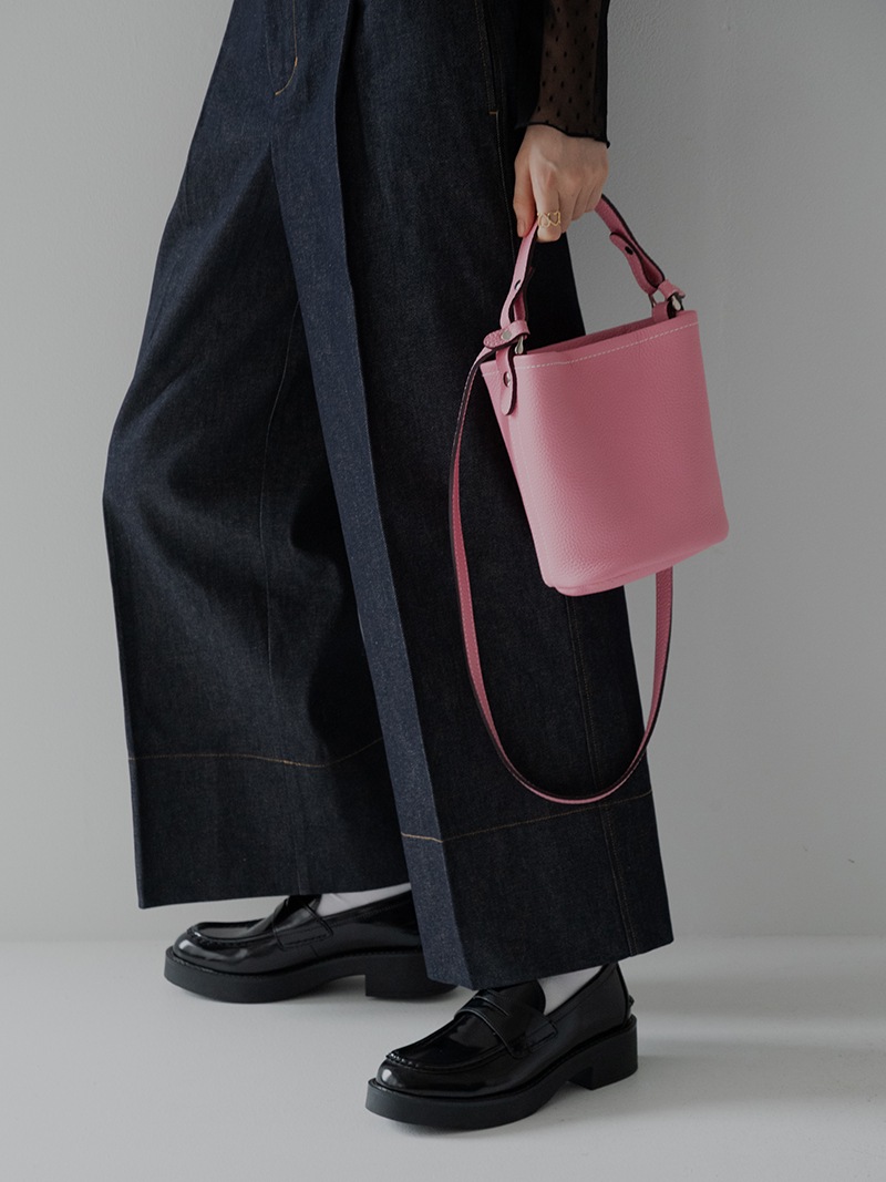 上質な天然皮革を使用したシンプルでどのようなコーデにも合わせやすいレザーバッグ。革に適度なコシと柔らかさがあり、また型押しも適度に不揃いとなり自然な表情が生まれています。