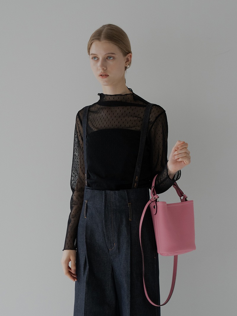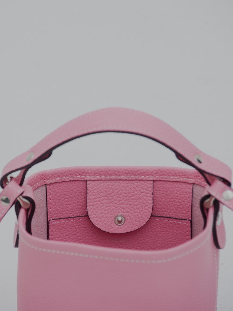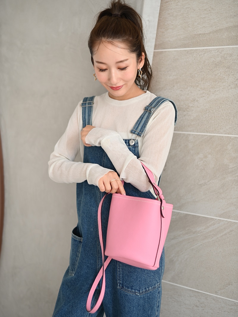 バケツ型なので、ペットボトルやポーチ等もしっかり入る容量となっており、ケータイが入るサイズの内ポケットもございます。