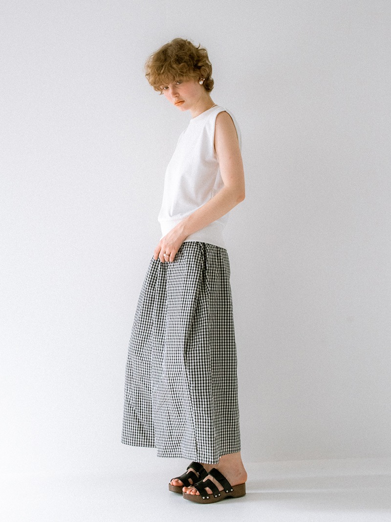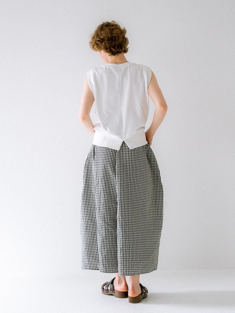 たっぷりギャザーを入れながらも、腰回りがすっきり見えるシルエットにもこだわりました。