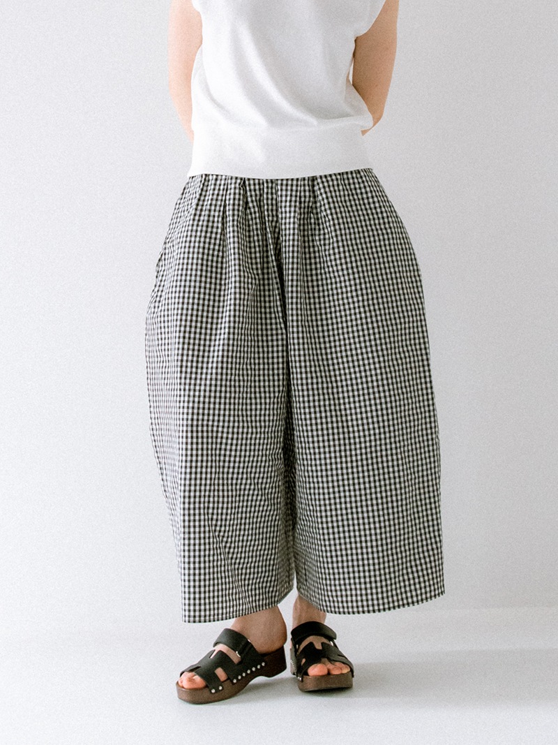 軽量でさらりとした薄手のタフタ素材を使用したリラックスパンツ。エアリーで涼やかなパンツは真夏にもオススメです。
