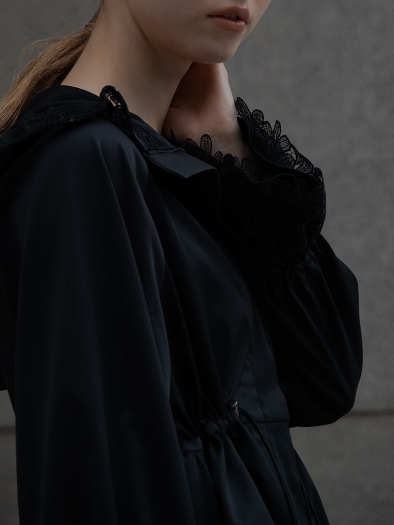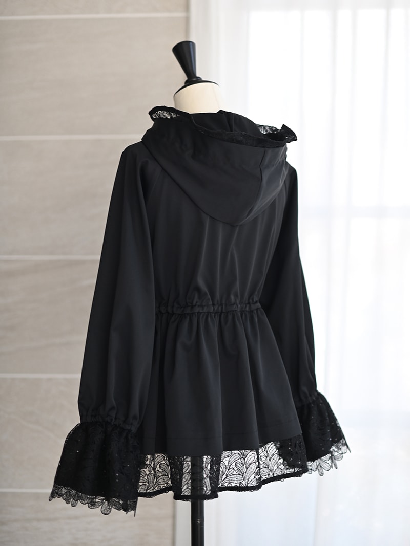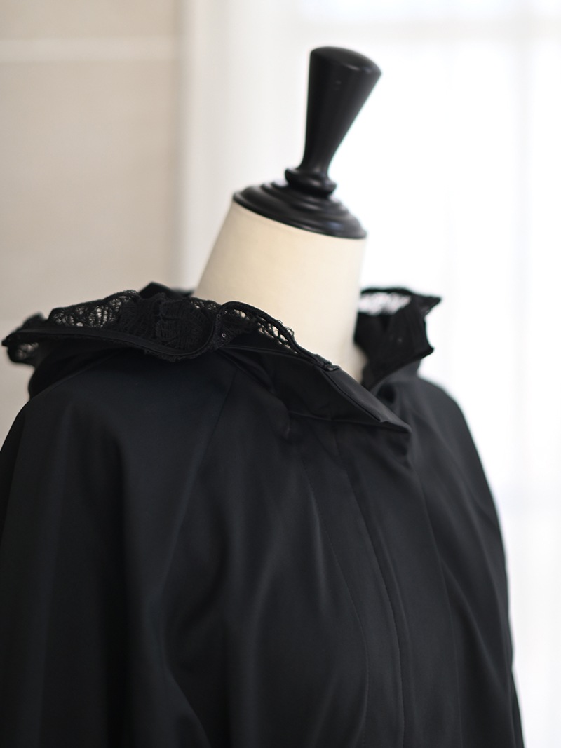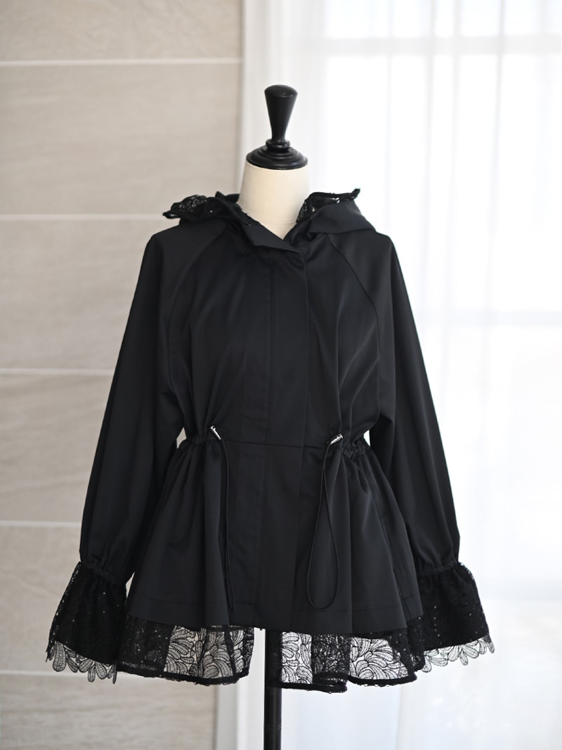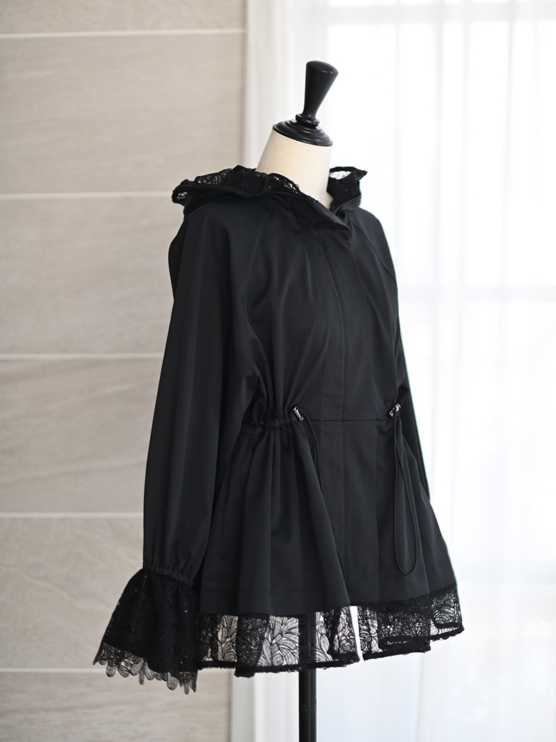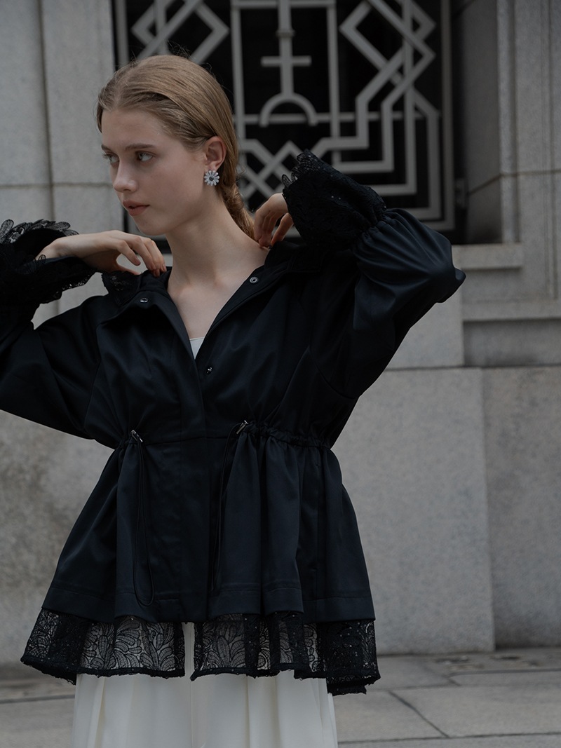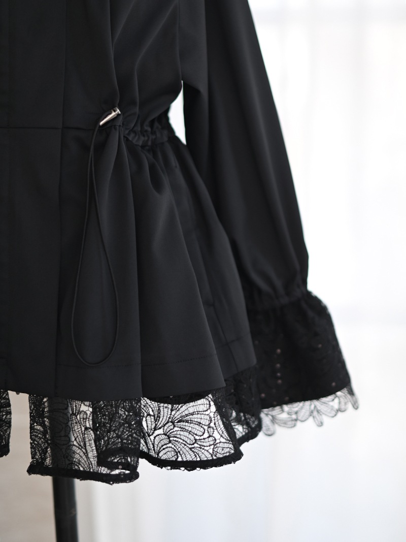 華やかで高級感のあるスパンコールレースは軽やかな透け感と繊細なきらめきをプラスし、カジュアルになりがちなライトアウターもエレガントな雰囲気に。