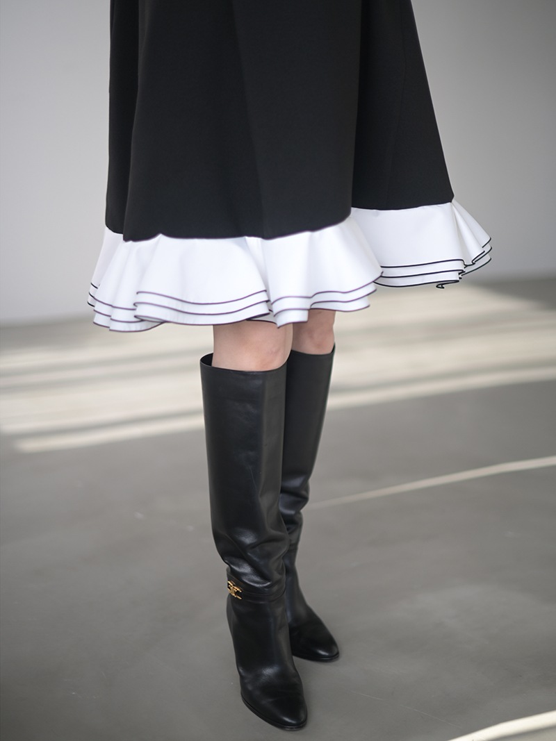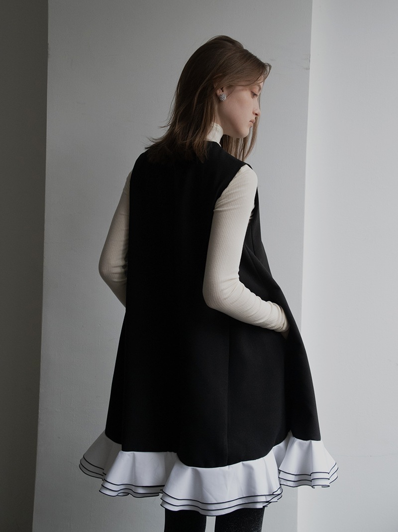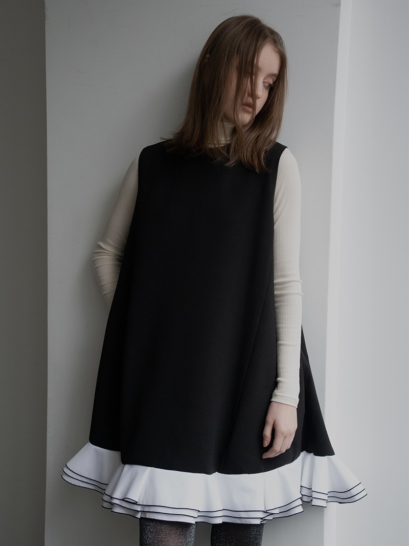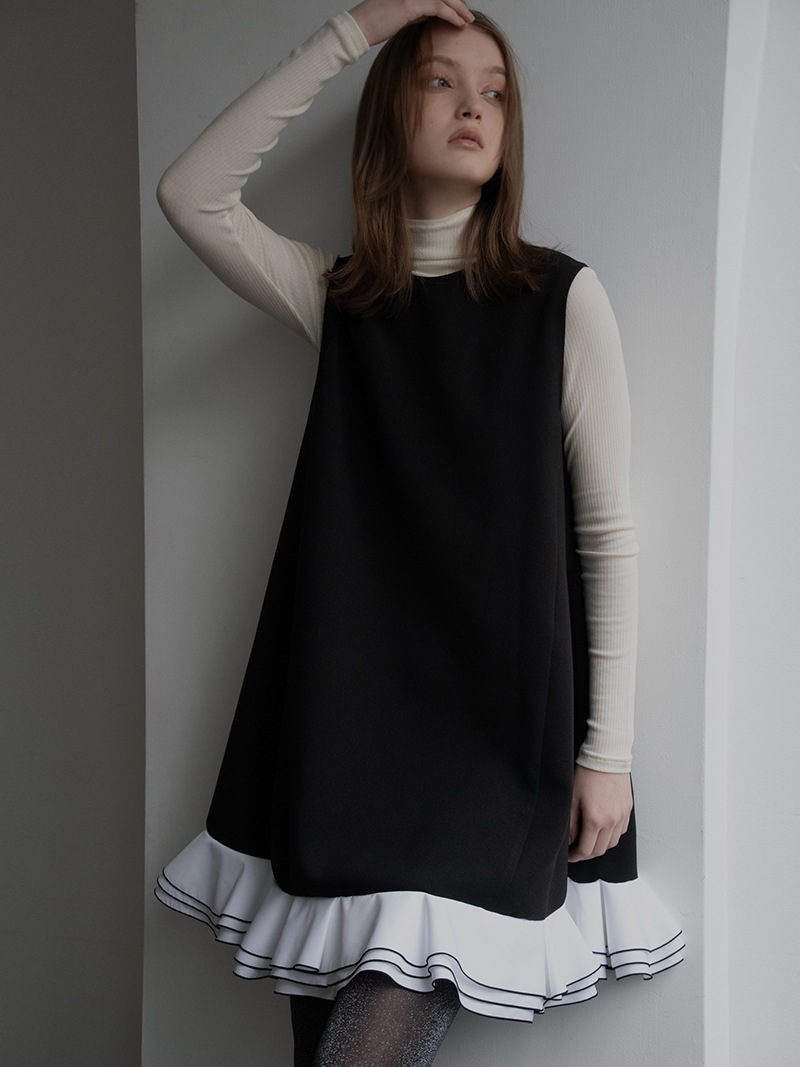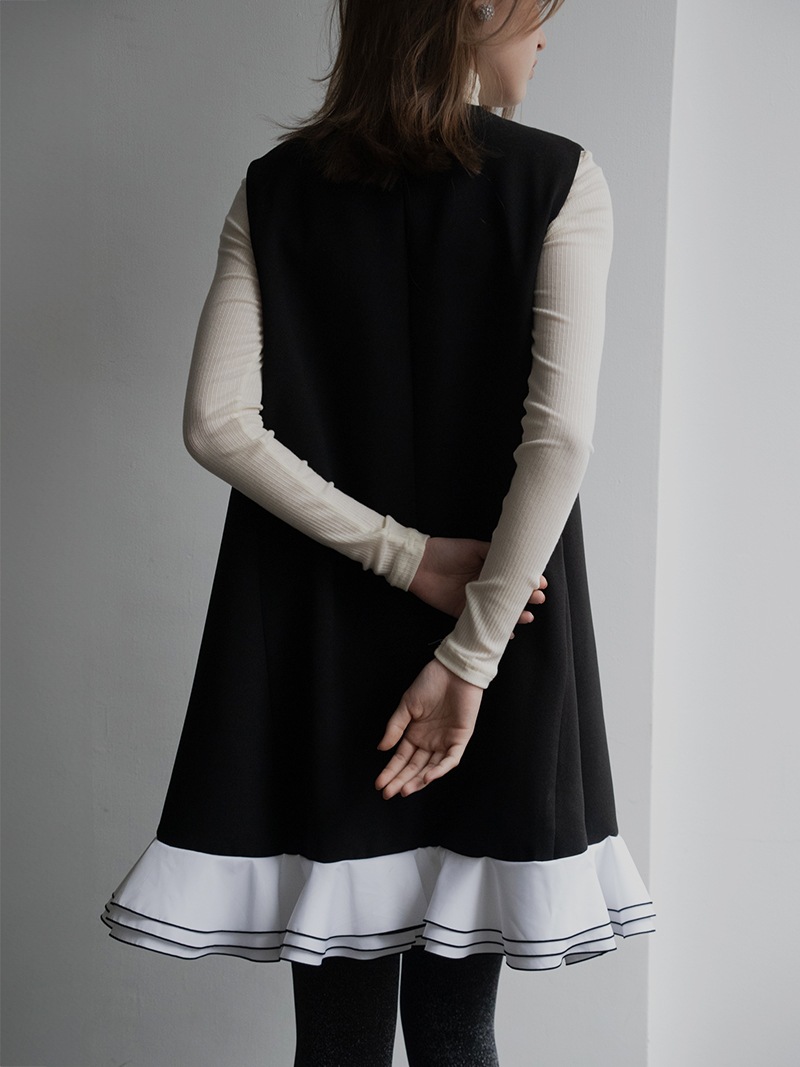 動きに合わせて揺れる計算された立体フリルを贅沢に重ねたフリルワンピース。フリルはメロー始末でコントラストをつけ、スペシャルなシーンも華やかに彩るとっておきの一枚に仕上げました。