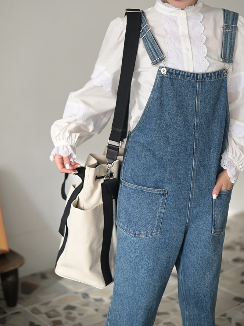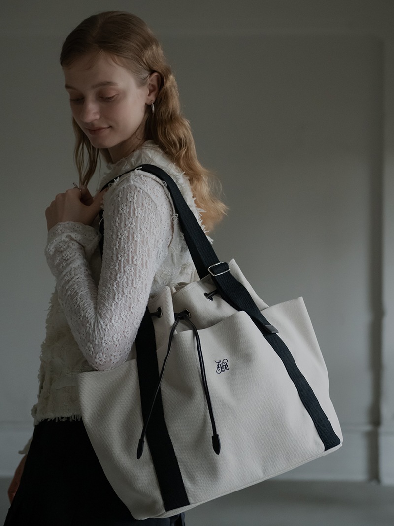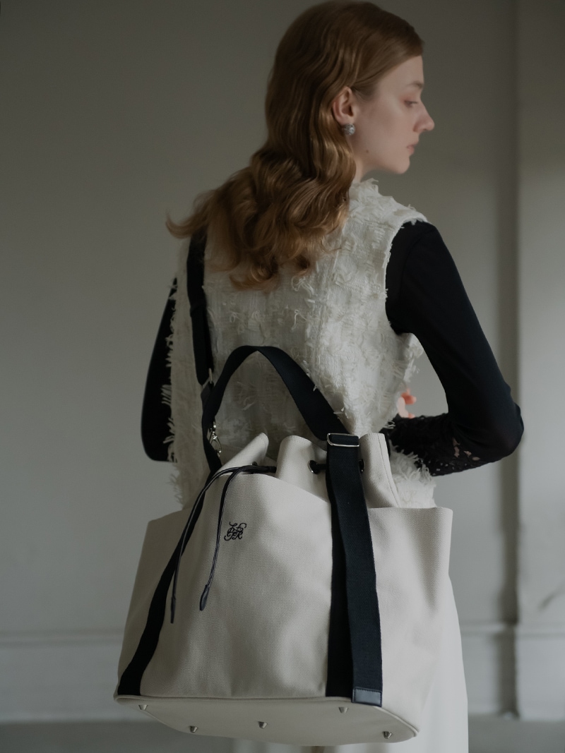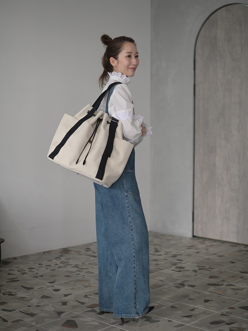 しっかりとしたキャンバス生地を使用し、キャンバス生地、裏地には撥水加工をほどこし、汚れに強い仕様に。持ち手部分は長さを調節できハンドスタイル、ショルダースタイルとお好みの長さでお召しいただけます。