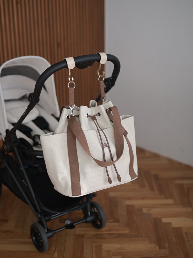 内側部分にはショルダーストラップの取り付けができクロスボディとしても使用できます。 付属でベビーカーに掛けるストラップも付くので4wayでお楽しみいただけます。 内側にはpcを収納できる安心ポケットもあり、出張やオフィス用にもお使いいただけます。 表部分はポケットになっており沢山収納していただけます。