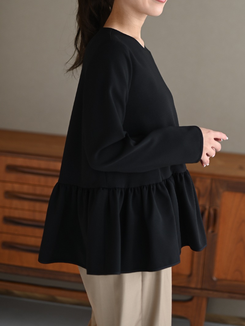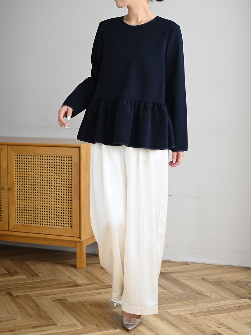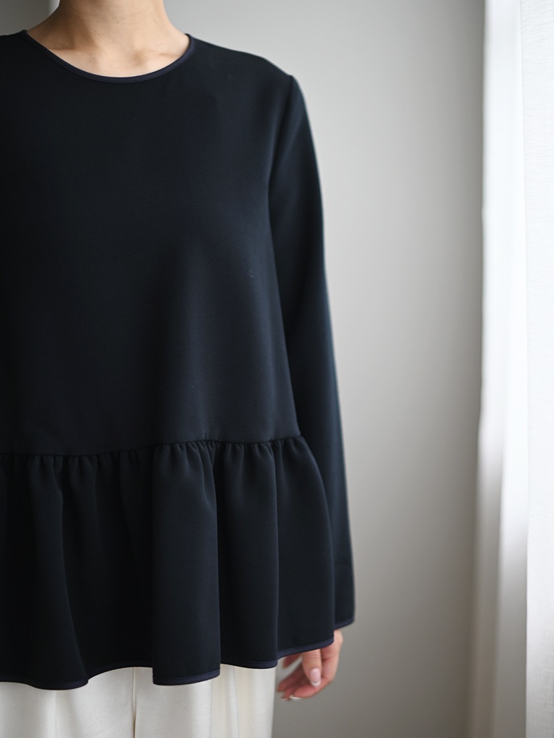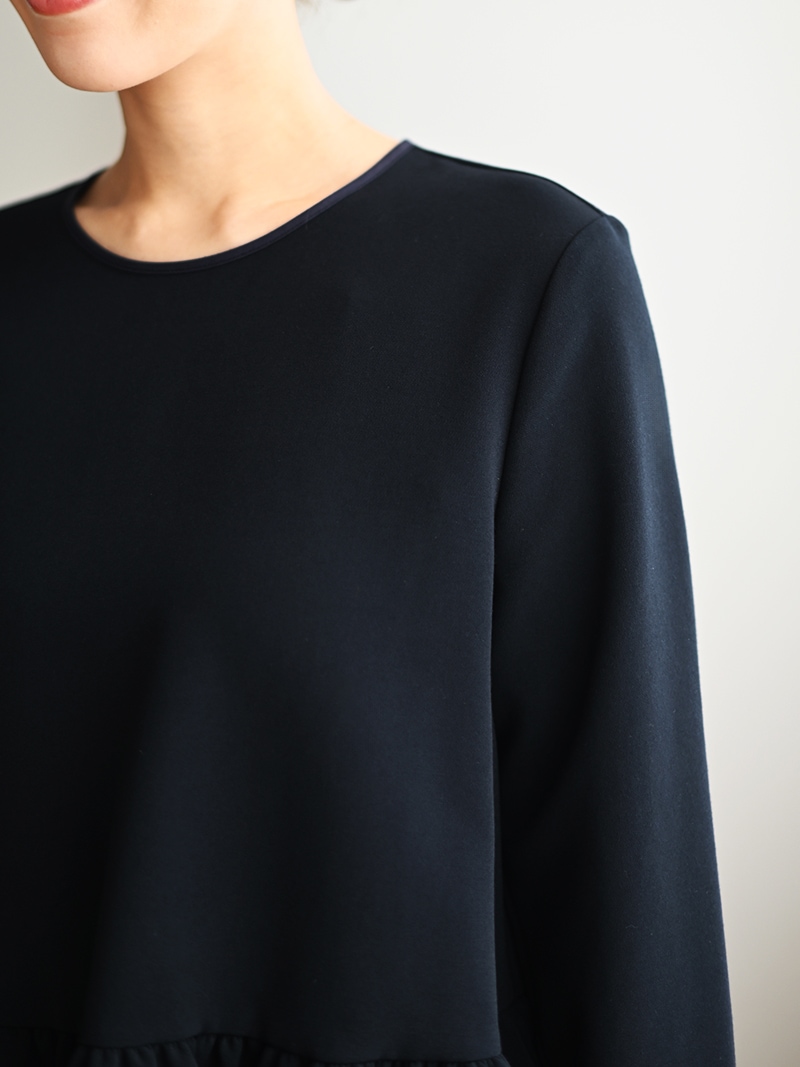 生地感・雰囲気、共に長いシーズンお召し頂ける一枚です。ネックライン&裾ラインにパイピングを施していますので、きちんとした印象になります。