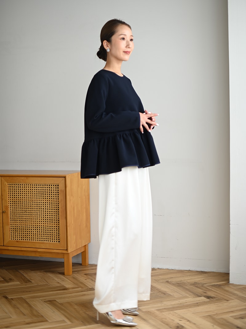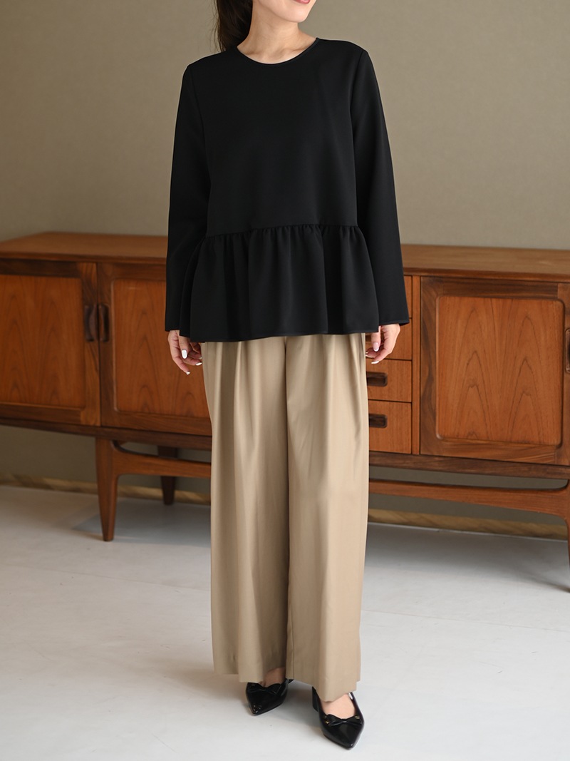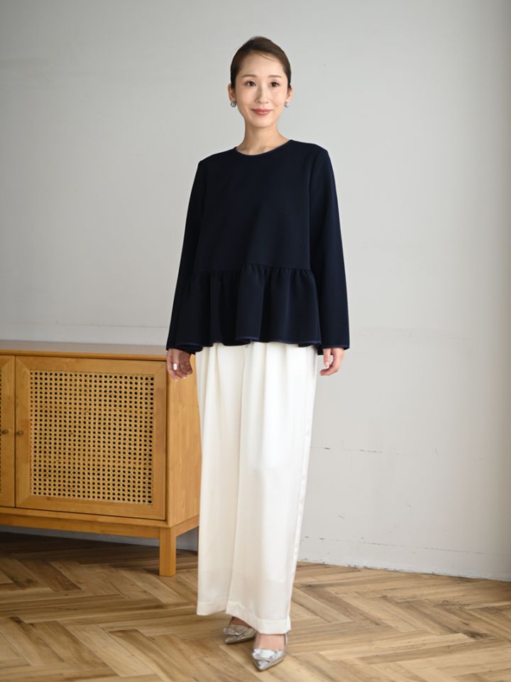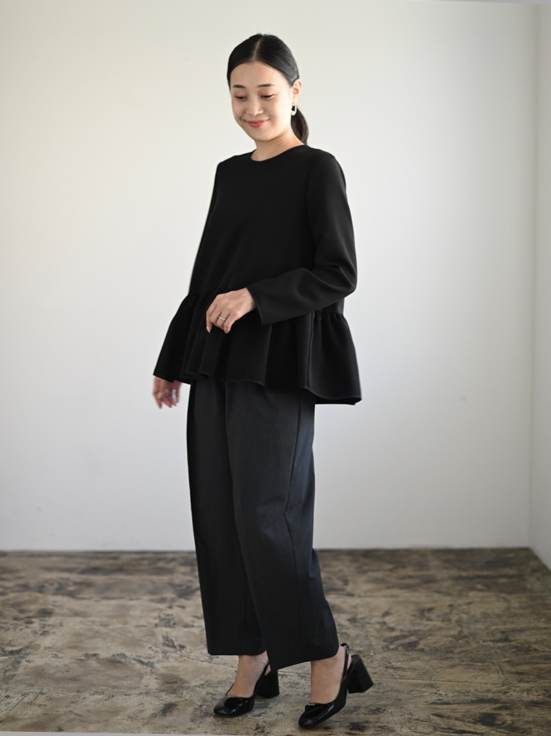 生地感・雰囲気、共に長いシーズンお召し頂ける一枚です。ネックライン&裾ラインにパイピングを施していますので、きちんとした印象になります。