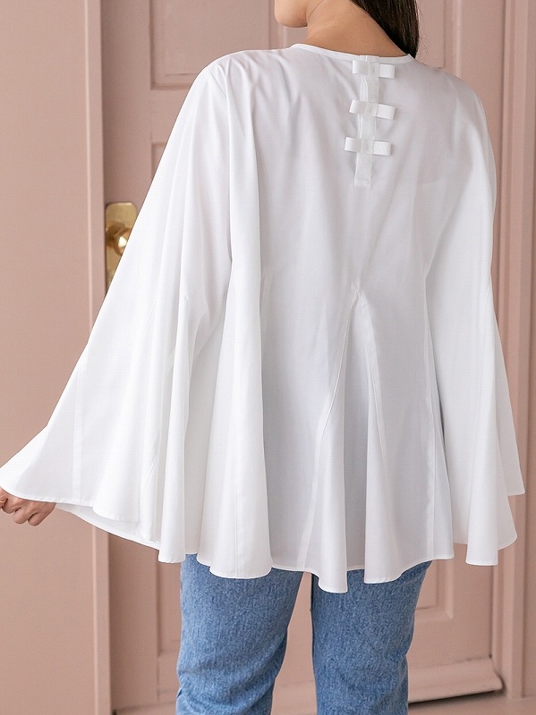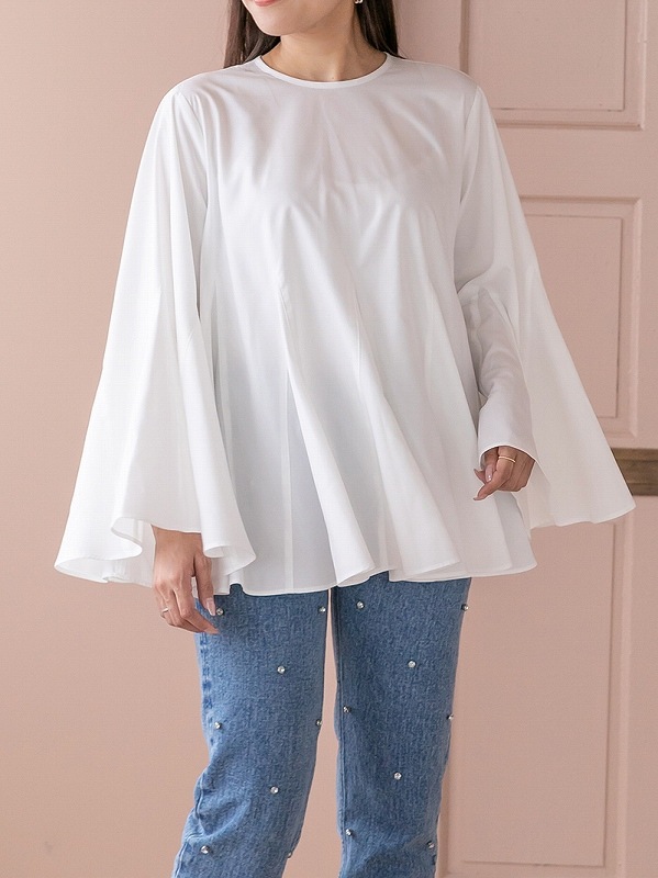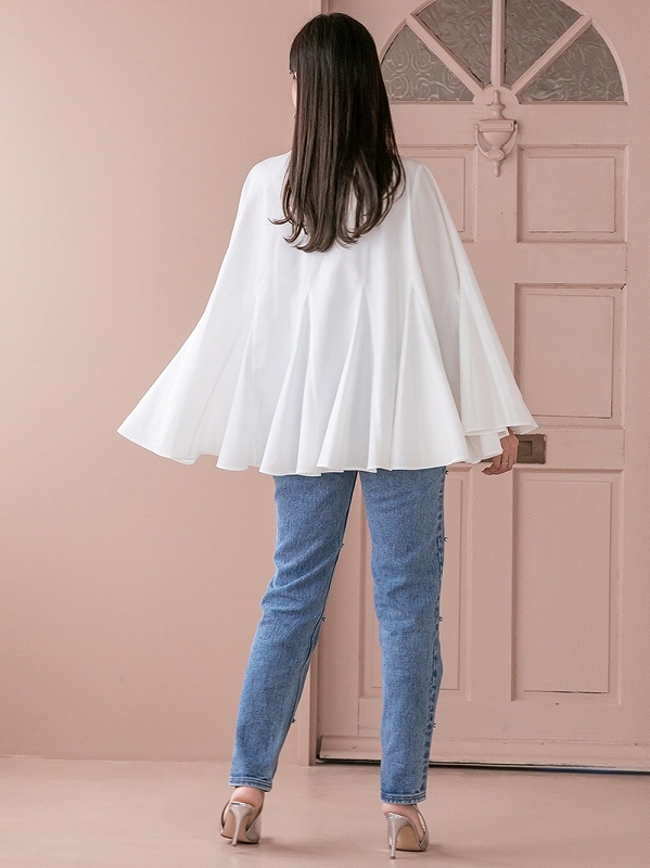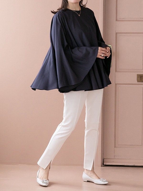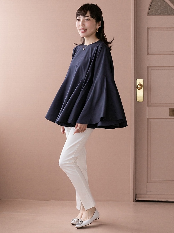 ほんのり甘い印象ながらもエレガントな着こなしを楽しめるトップスに仕上げました。