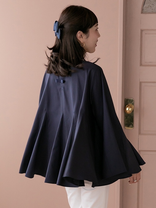 ドレープ感が美しい、やや薄手でしなやかな生地を使用したエレガントなデザイン。バックスタイルにリボンを添えた愛らしいデザインと、裾フレアの動きのあるシルエットが優雅に着映えます。