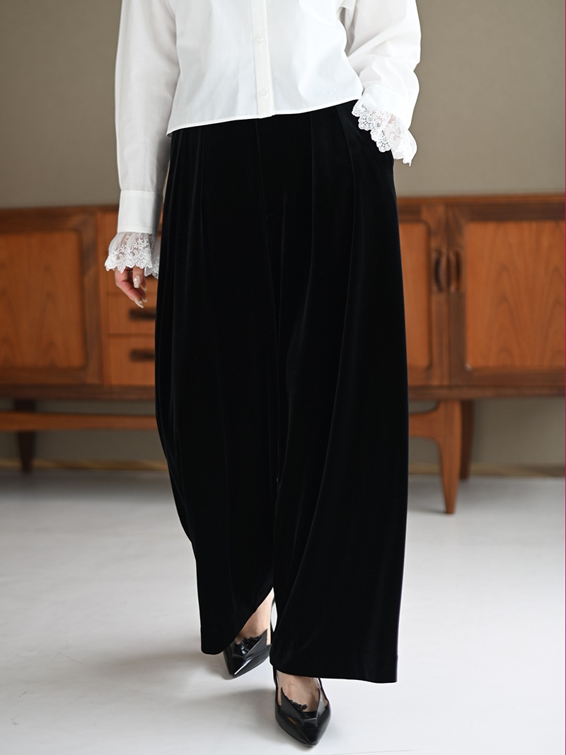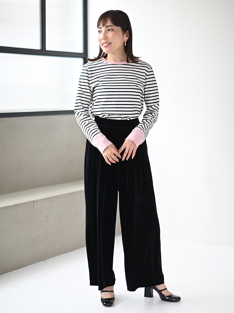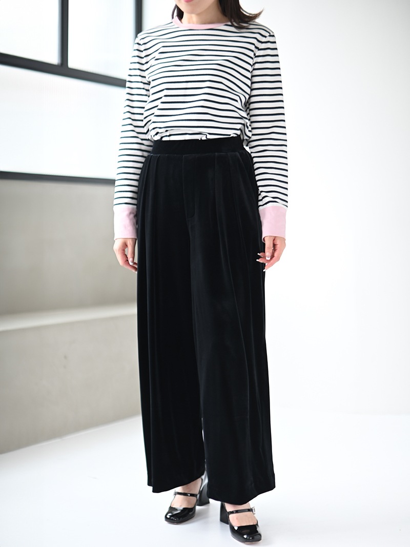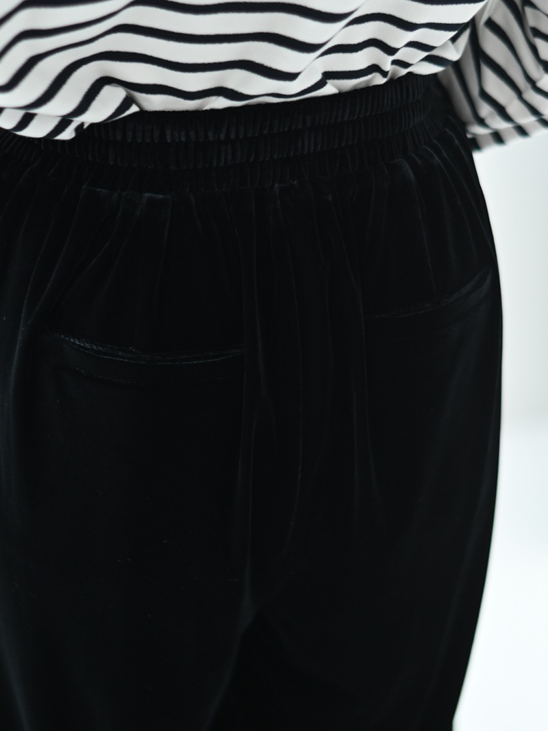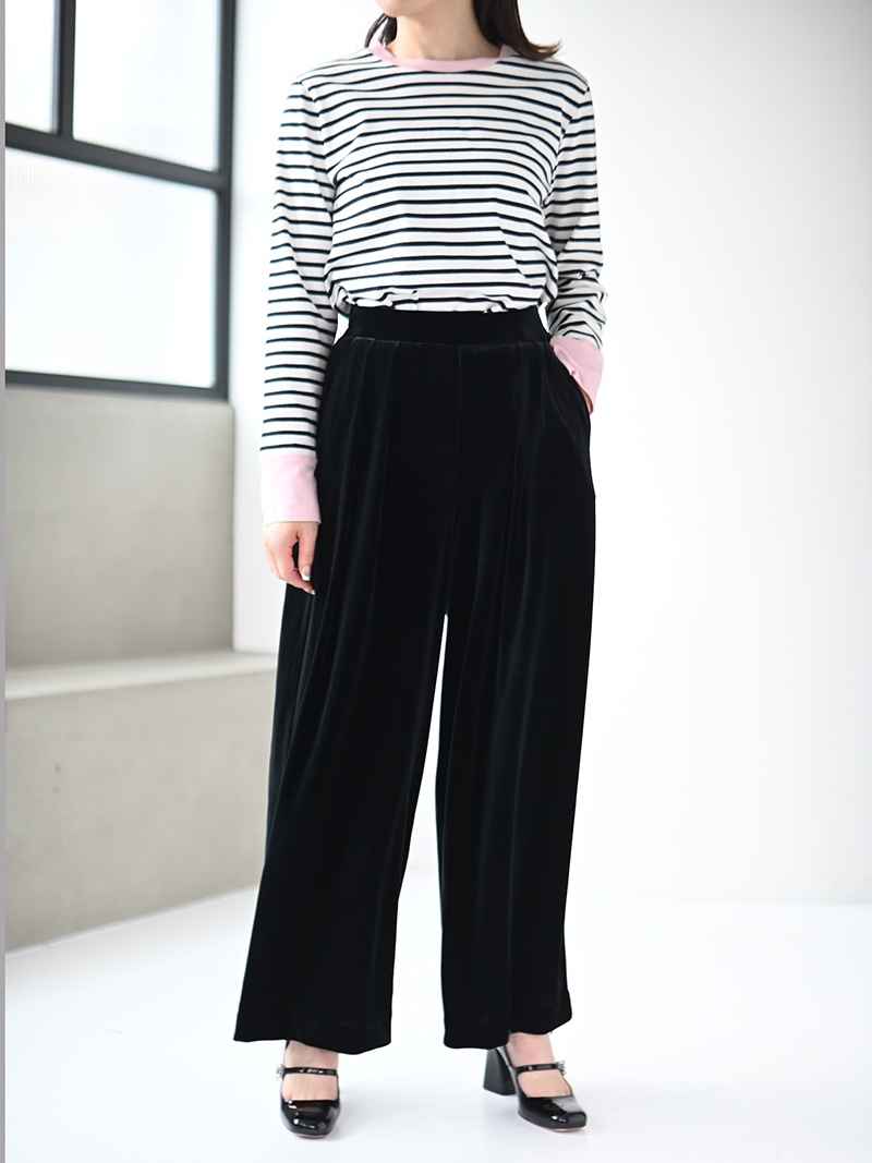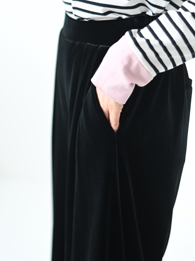 様々なシーンに活躍するイージーパンツ。秋冬取り入れたいベロア素材が登場。