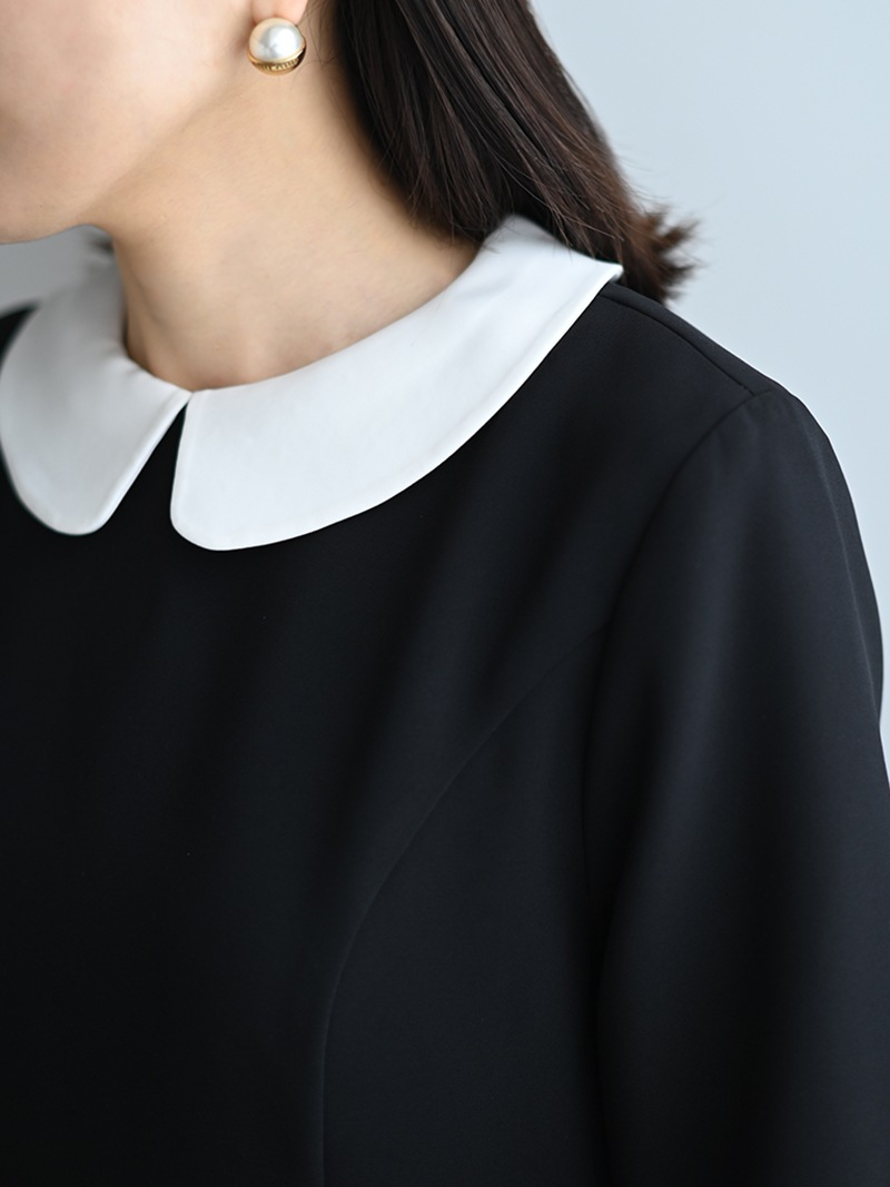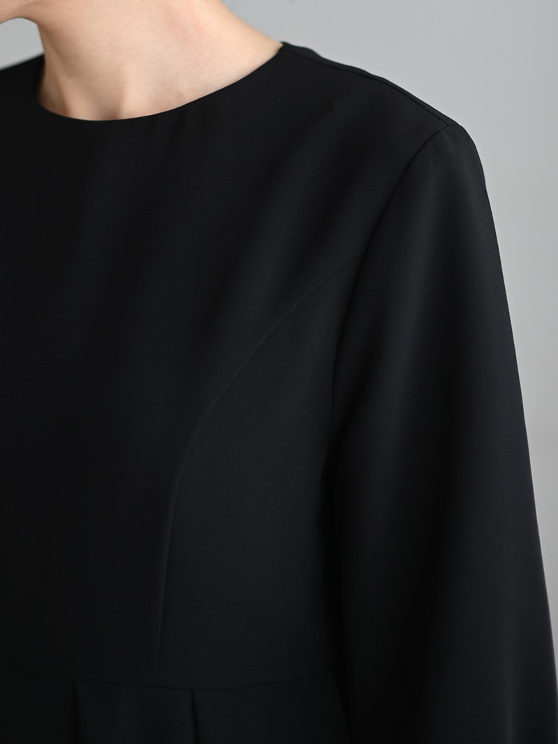 落ち感のある程よい地厚さの生地に加え、長い時期着用できる9分袖に設定し、オケージョンやフォーマルシーンに活躍するワンピースに仕上げました。