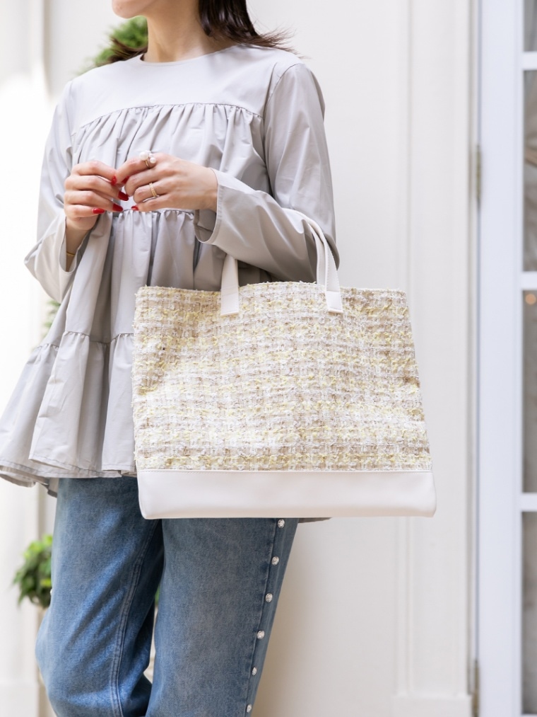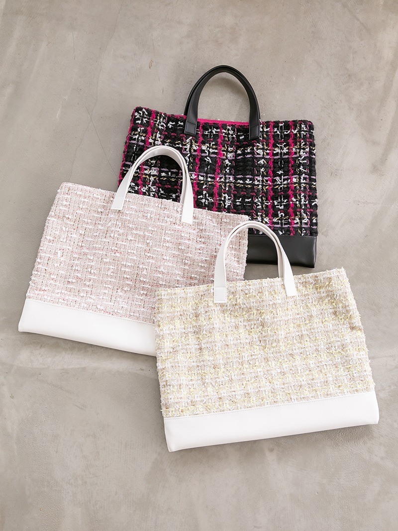 | 品質 | [持ち手/バッグ底]合成皮革 [裏地]ナイロン100% [表地]毛39%/アクリル31%/ポリエステル17%/ナイロン11%/レーヨン1%/綿1% |