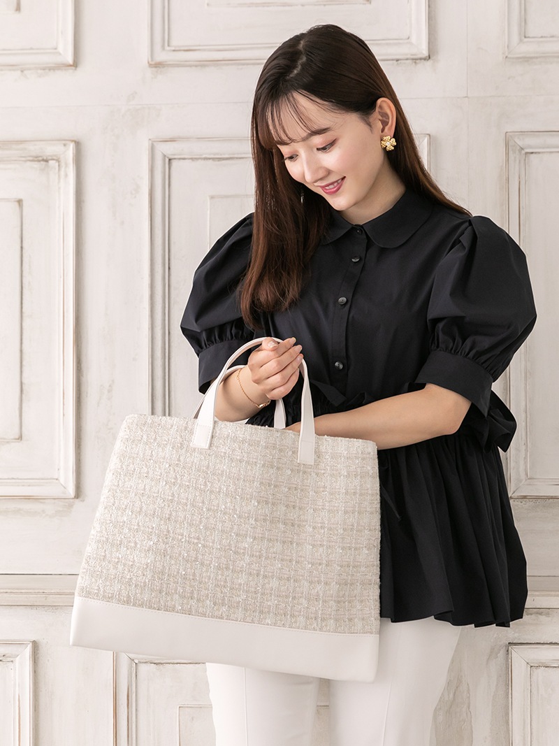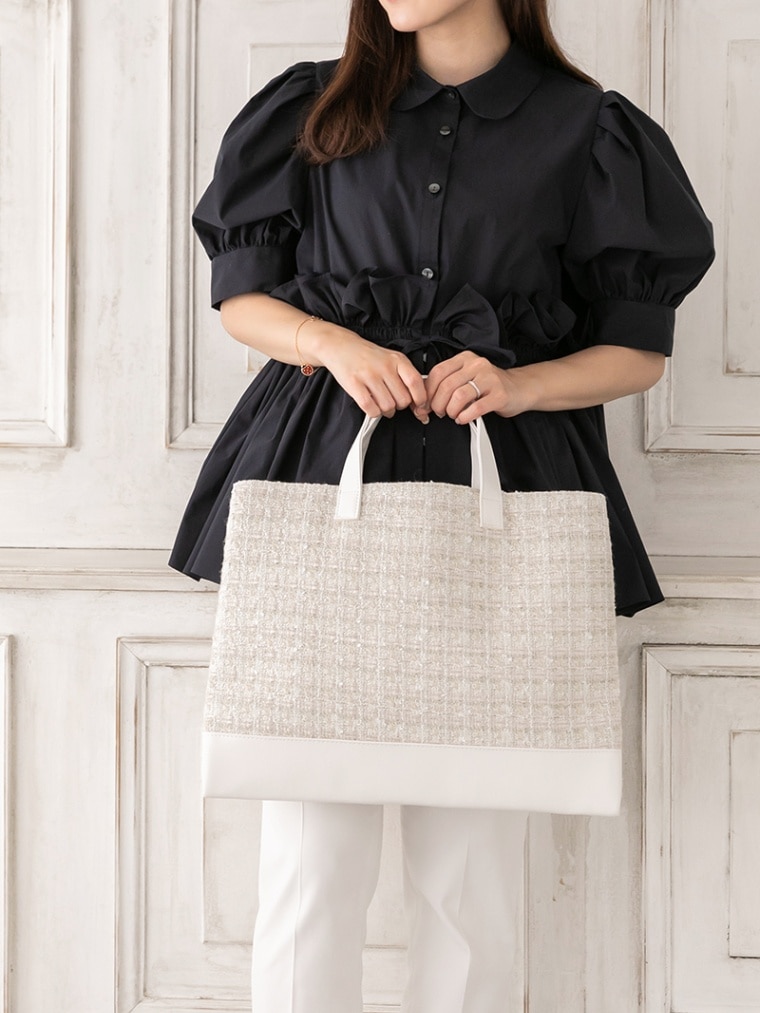 | 品質 | [持ち手/バッグ底]合成皮革 [裏地]ナイロン100% [表地]毛39%/アクリル31%/ポリエステル17%/ナイロン11%/レーヨン1%/綿1% |