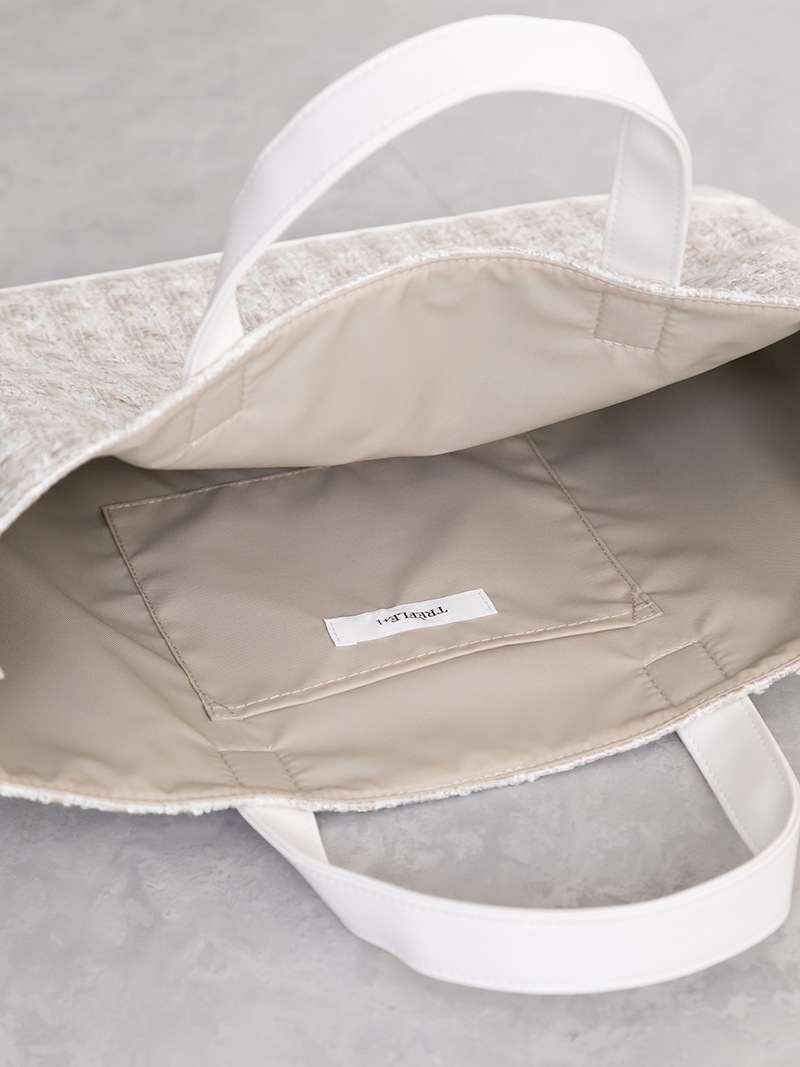 厳選した日本tweedを使用。本体部分には芯地を張り合わせ型崩れしにくい仕様に。