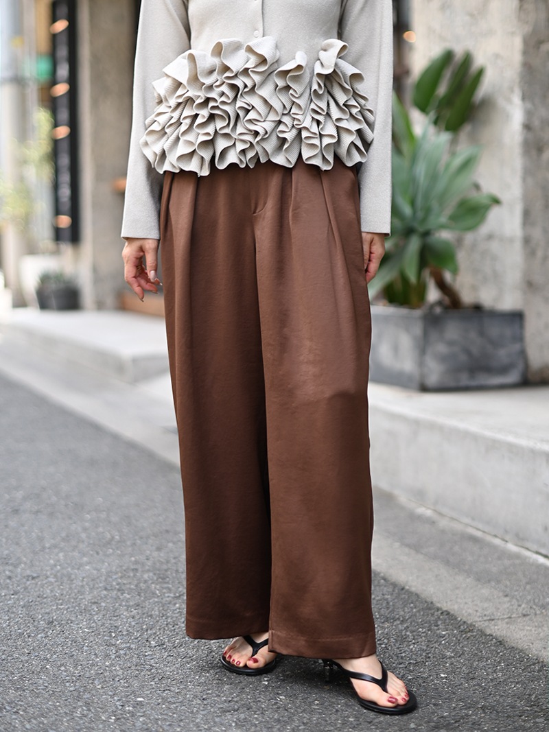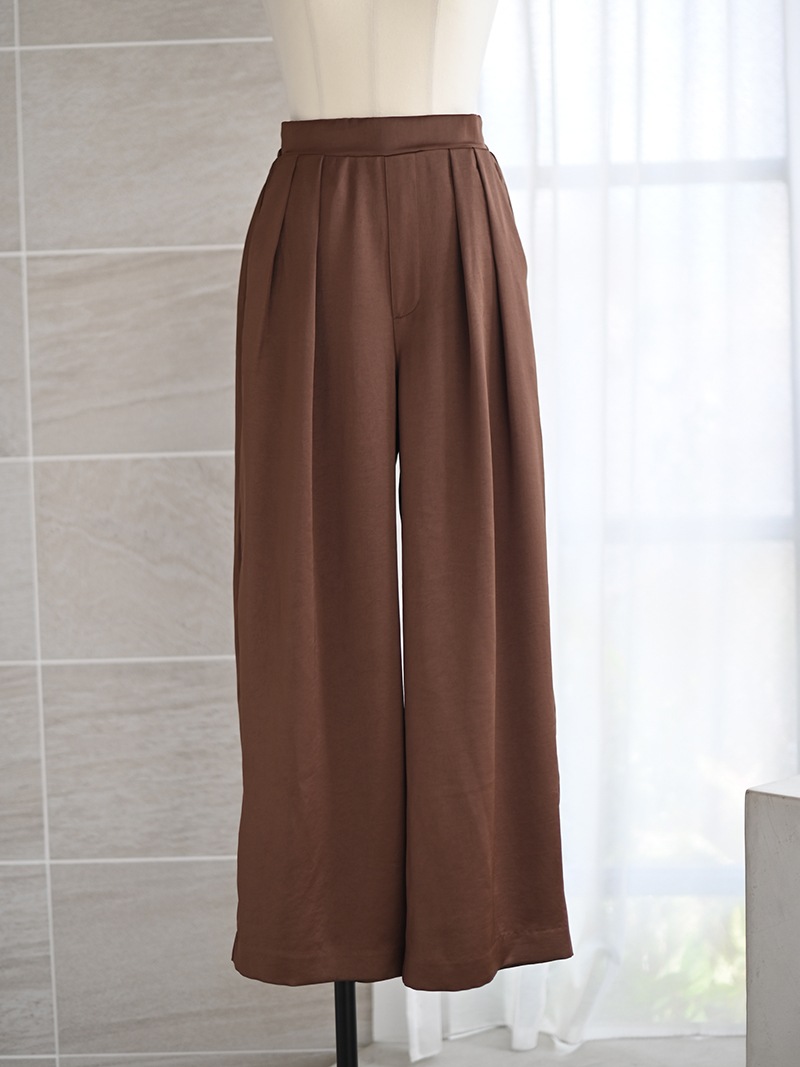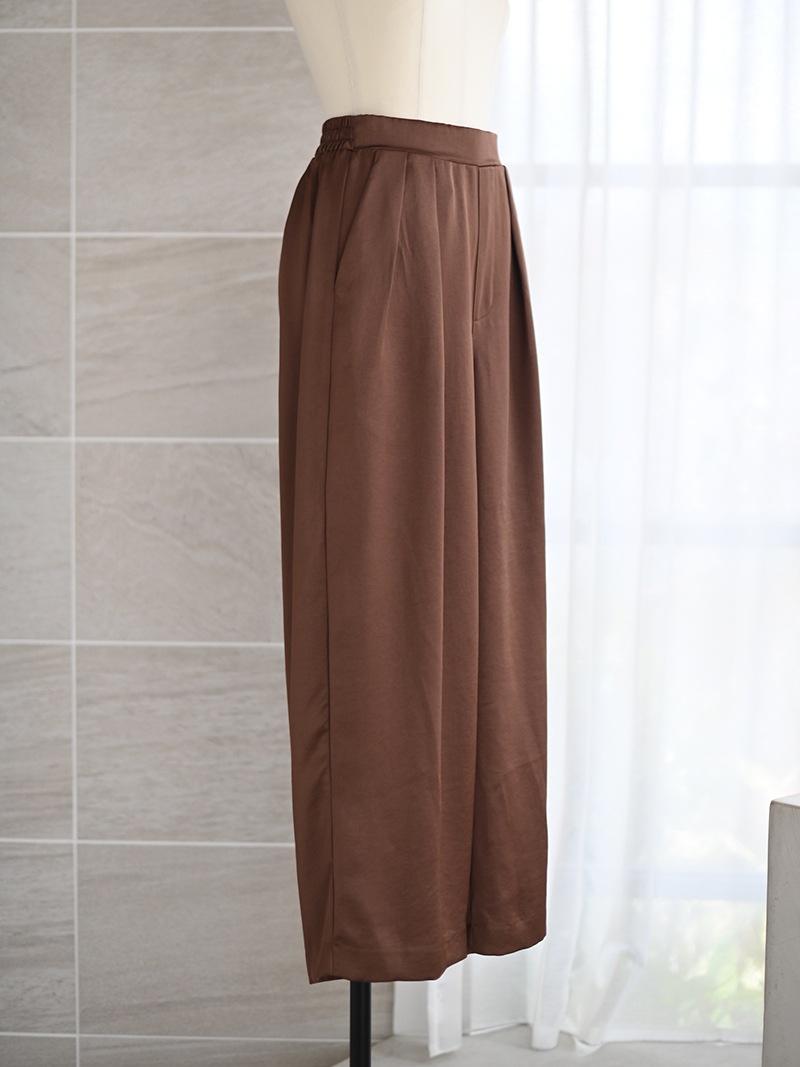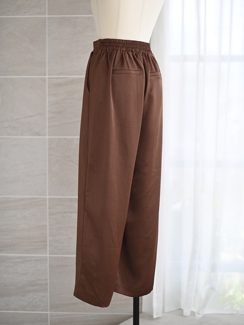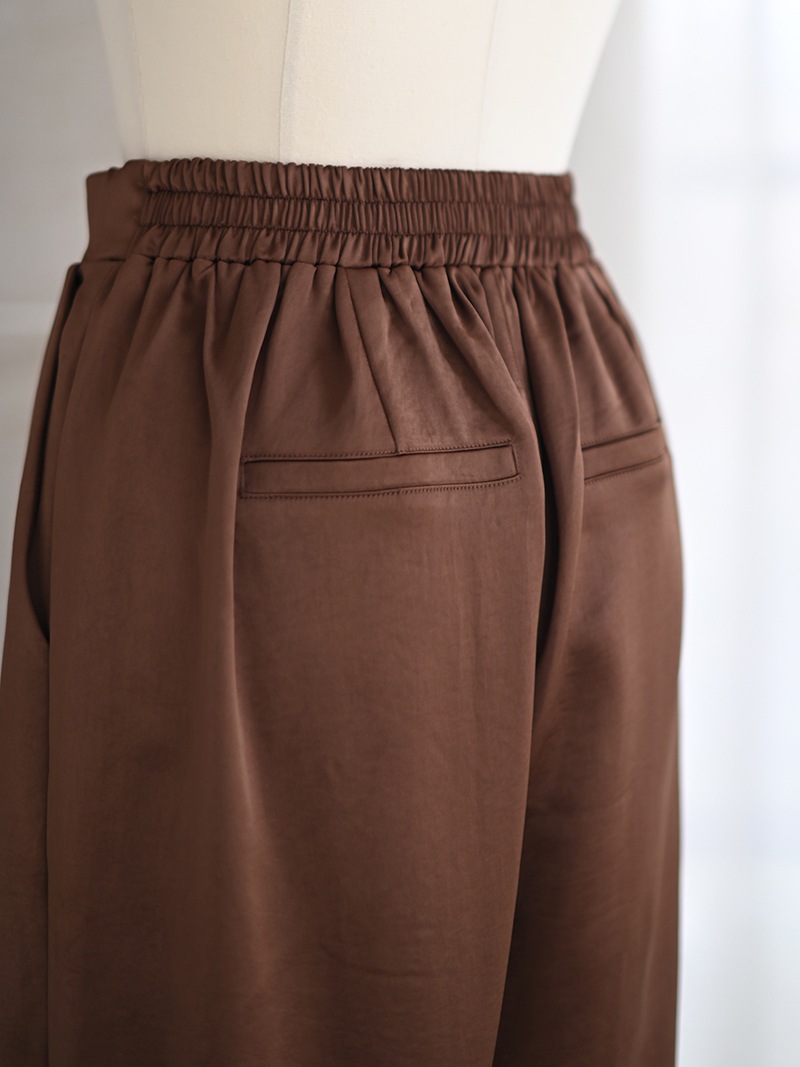 フロントに施したツータックがポイント。程よくワイドシルエットで脚のラインを拾わず、ウエストはバックゴム仕様でイージーな履き心地。