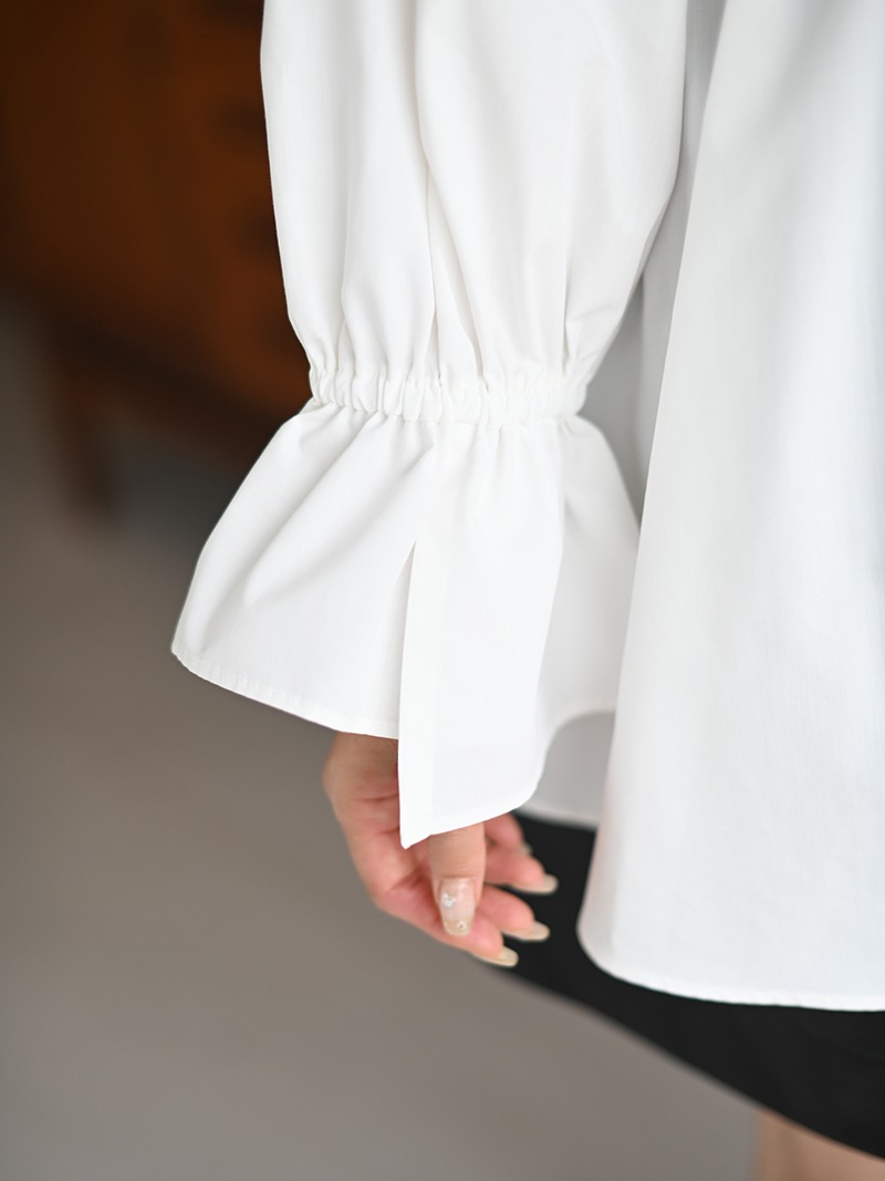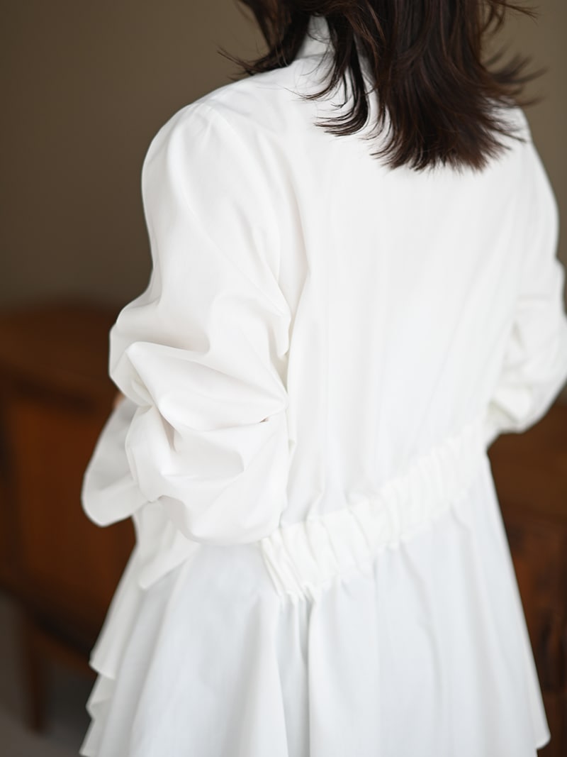 袖口にはゴムを入れ、袖口をたくし上げて袖ボリュームデザインにも。