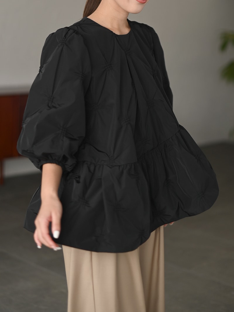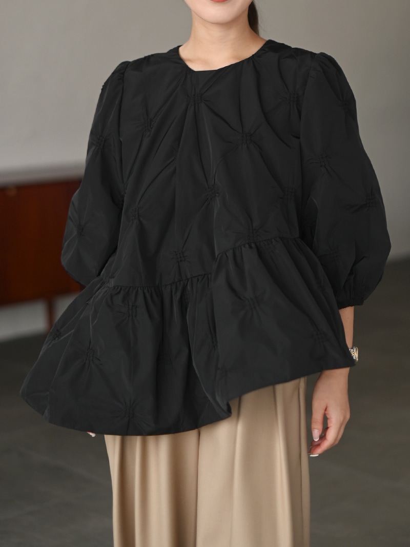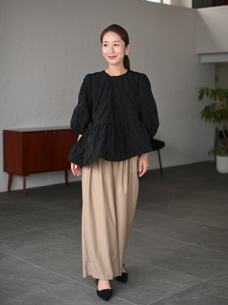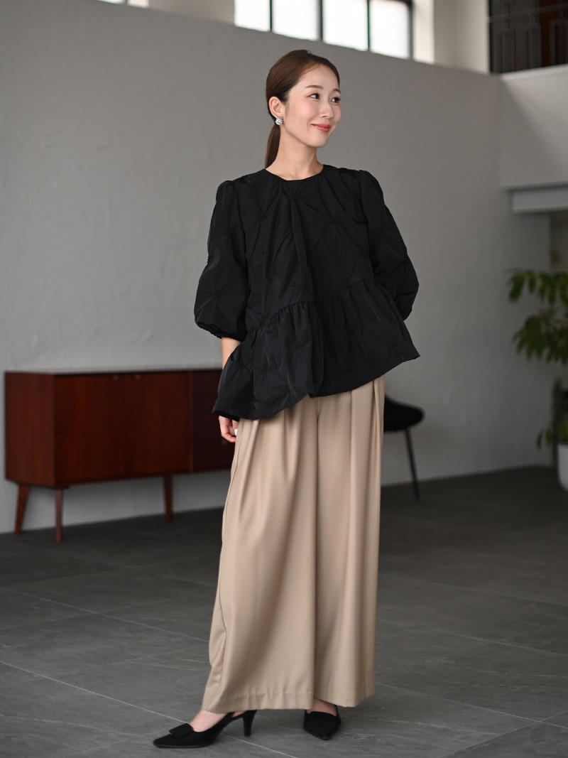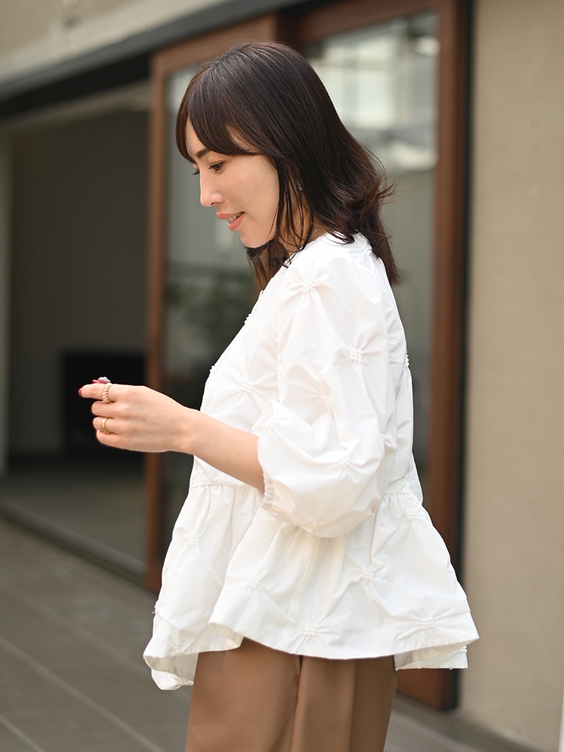 程よい袖ボリュームや裾フレアにこだわり女性らしいデザインに仕上げました。