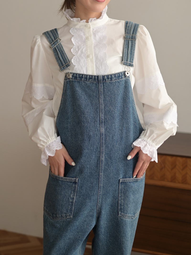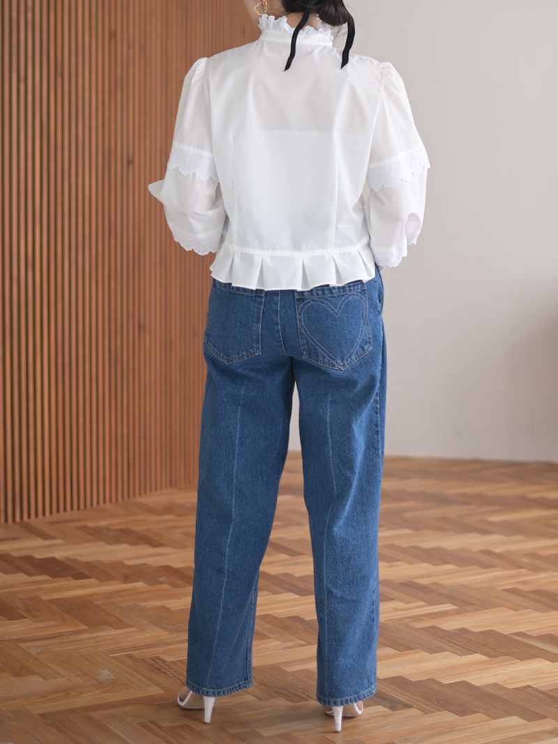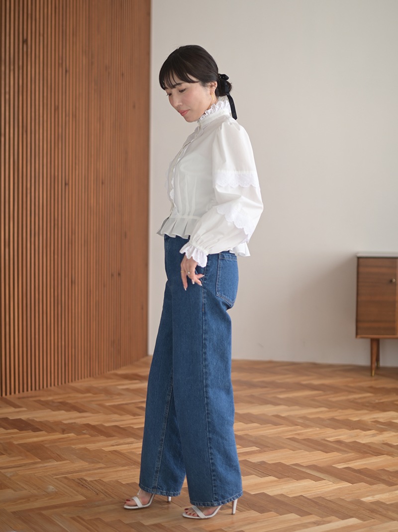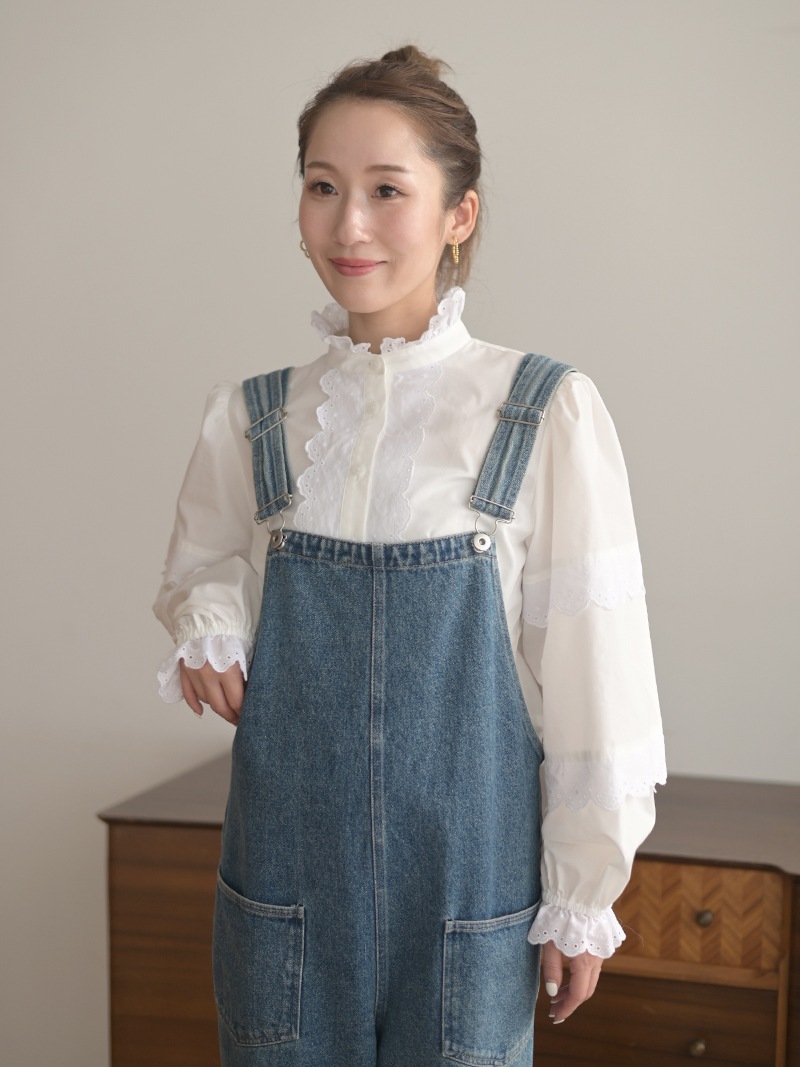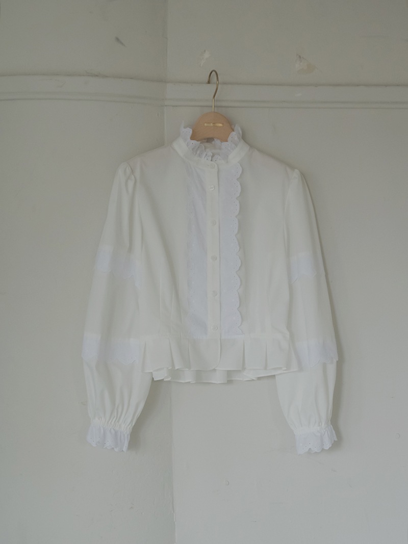 繊細なレースディテールが印象的なクラシカルブラウス。フロントに施したレースが縦のラインを強調し、甘さの中にすっきりとした表情をプラス。