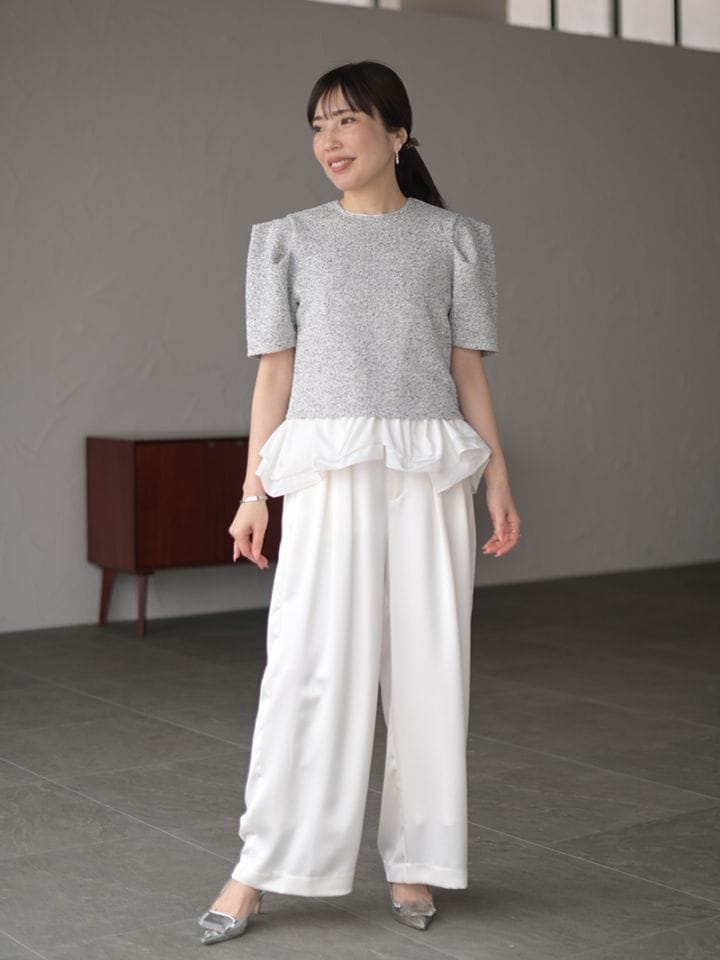 幅広いスタイリングに華やかさをプラスでき、シーズンレスでご着用いただけます。