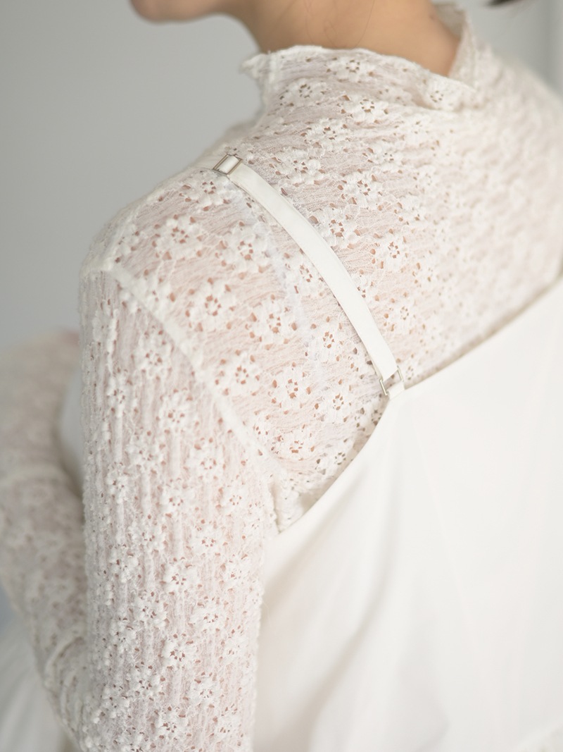 アジャスター付きで、レイヤードするトップスやカーディガンに合わせて長さ調整可能。